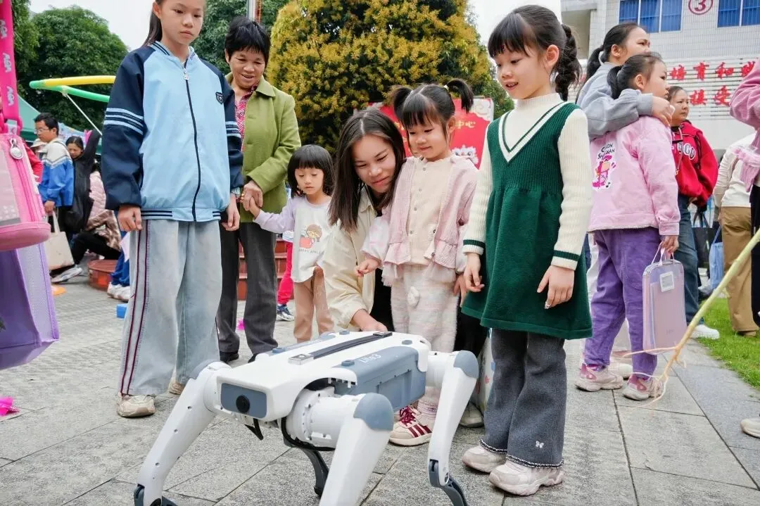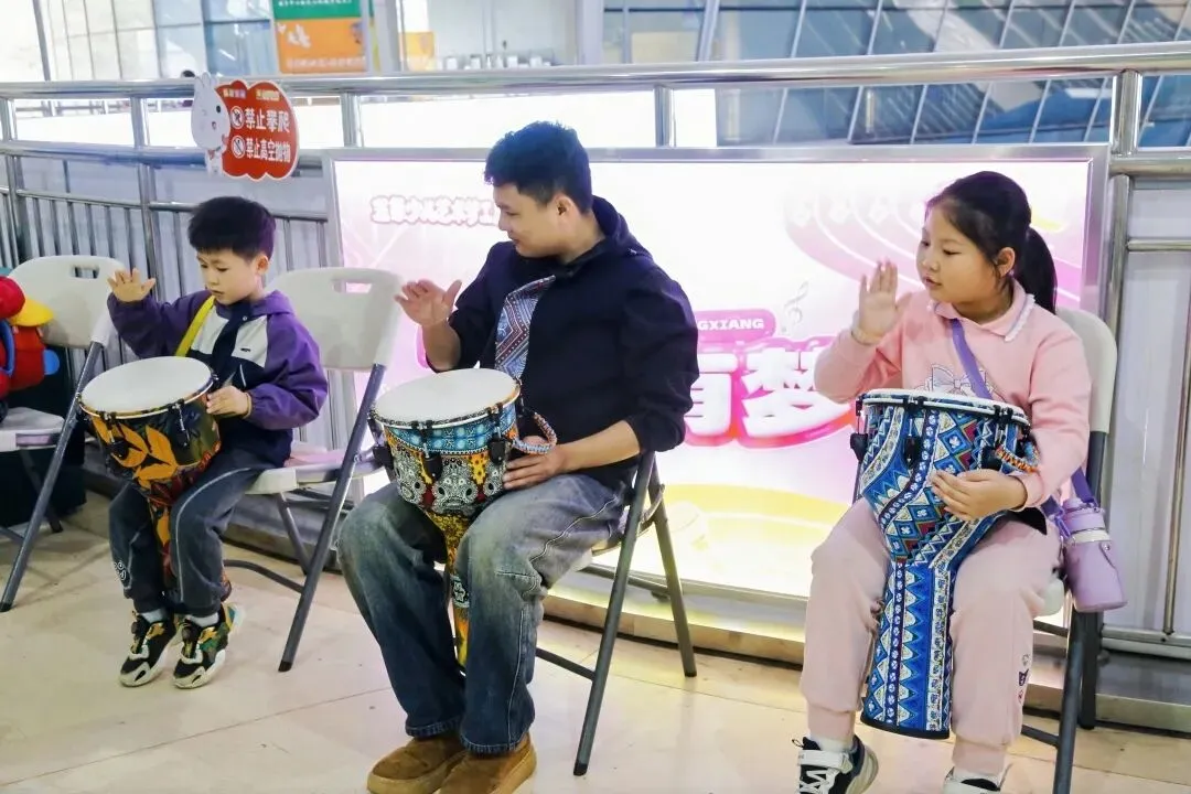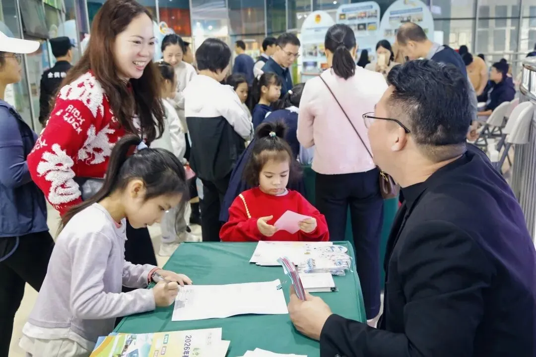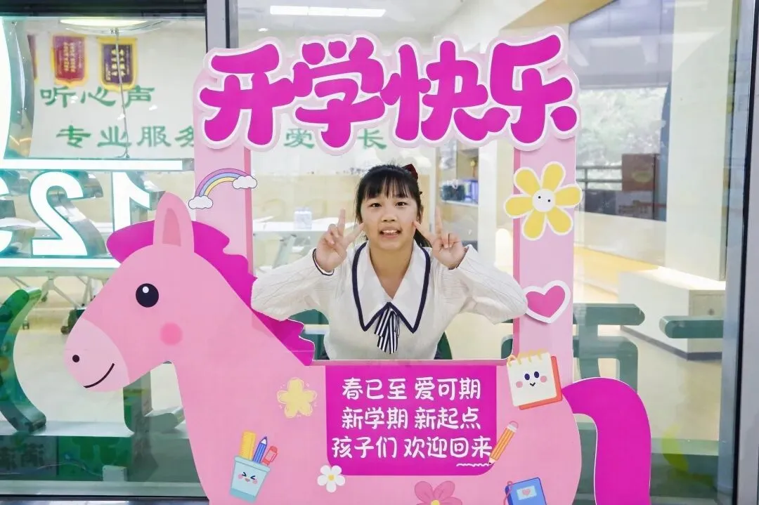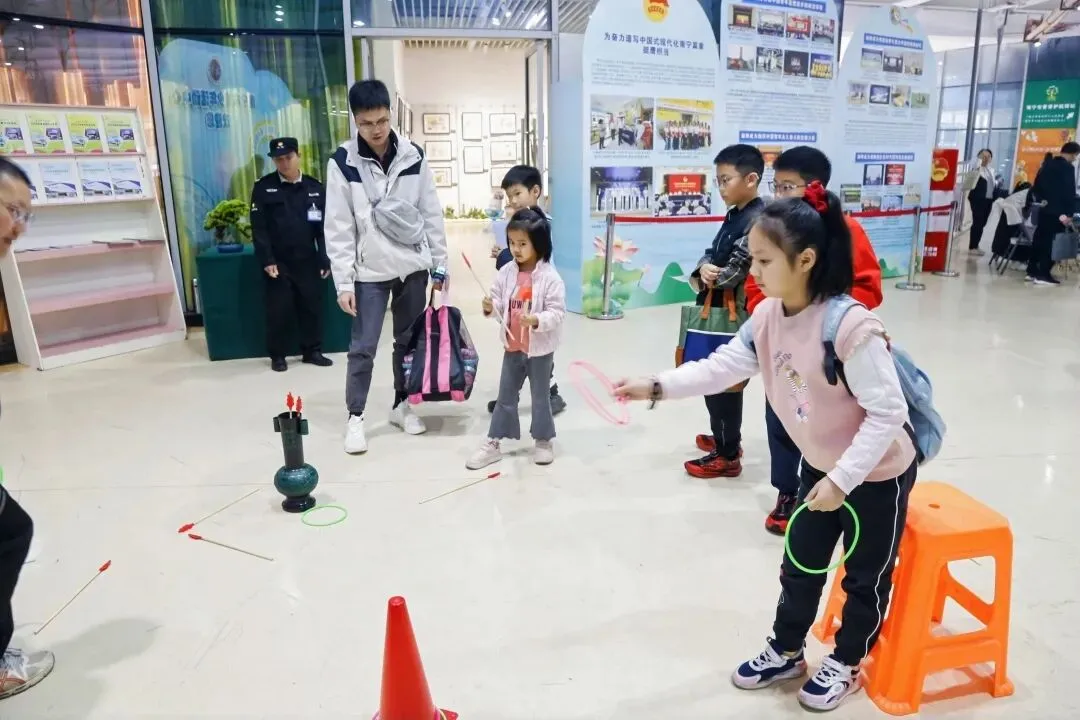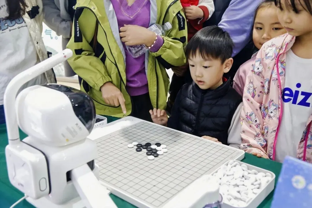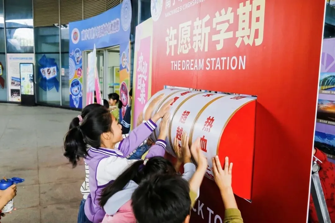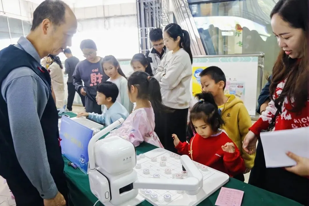 当天,五象分部同样洋溢着开学的喜悦。从大门电子横幅上“我们开学啦!”的醒目字样,到开学主题打卡点,处处传递着新学期的朝气。互动体验活动更是让人眼前一亮:科技体验区里,孩子们在机器人象棋、机器人围棋对弈中感受人工智能的乐趣;艺术体验区内,非洲鼓的欢快鼓点和空灵鼓的空灵音色交相呼应,吸引众多家长和孩子驻足尝试;运动体验区的投壶、抛圈则让传统游戏焕发新活力。现场招生咨询台前,老师们耐心解答家长疑问,提供贴心服务。