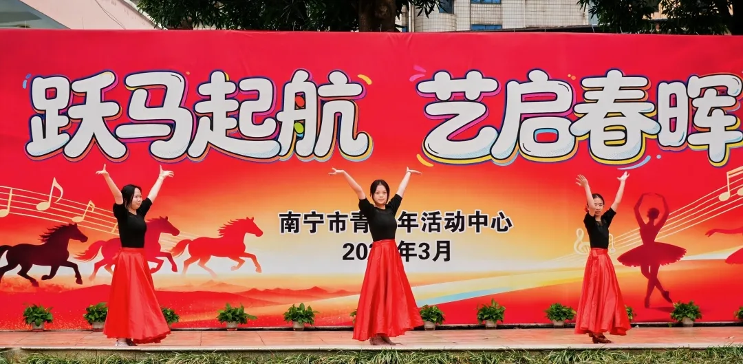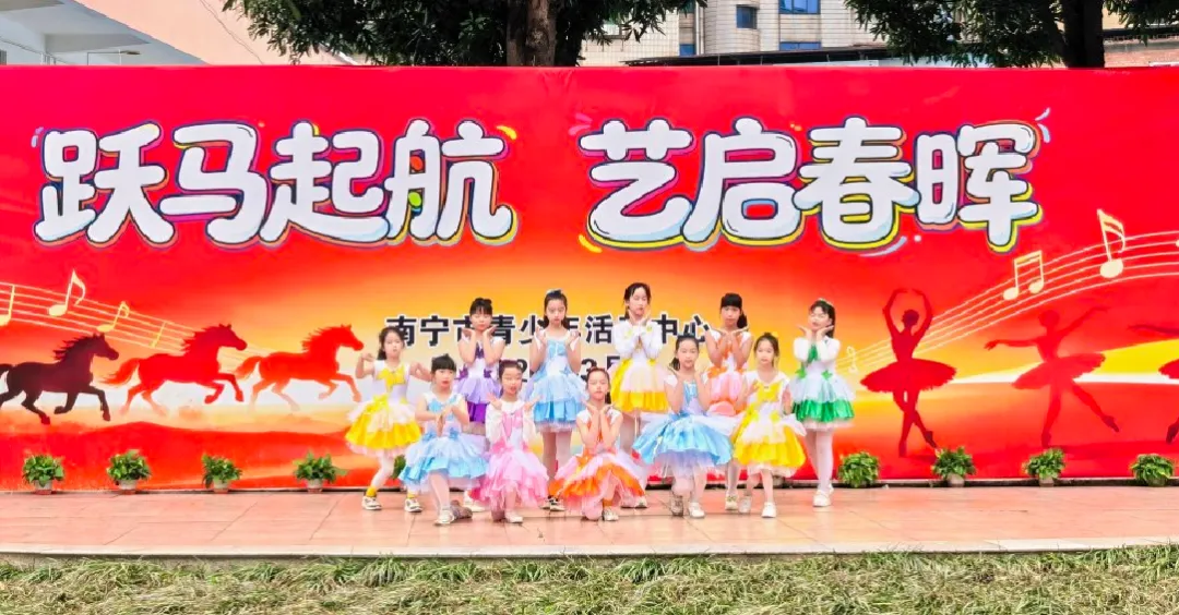 在“跃马启航·艺启春晖”文艺展演中,中国舞、拉丁舞、器乐、朗诵及唱乐团学员轮番登场,带来表演唱《一年又一年》《蜗牛》,舞蹈《送你一朵小红花》《风吹麦浪》《恰恰·斗牛》,二胡独奏《赛马》、尤克里里和手风琴弹唱《童年》、朗诵《骏马迎春》等精心编排的节目,展现出邕城青少年朝气蓬勃的精神风貌,为新学期的艺术学习之旅奏响了充满希望的序章。