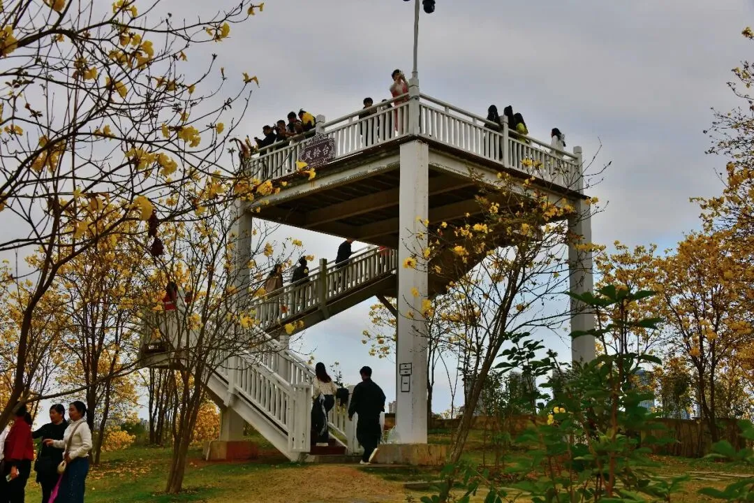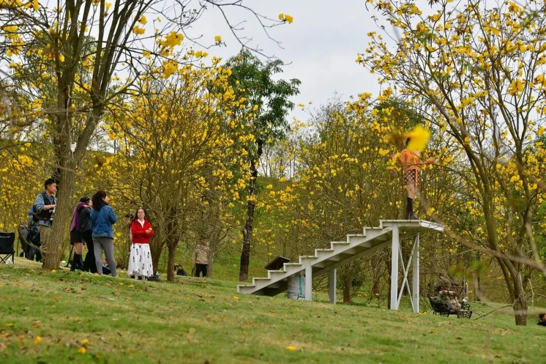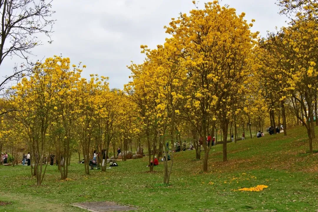 南宁青秀山黄花风铃园观赏:风铃摇曳遍青山,满园尽带“黄金甲”