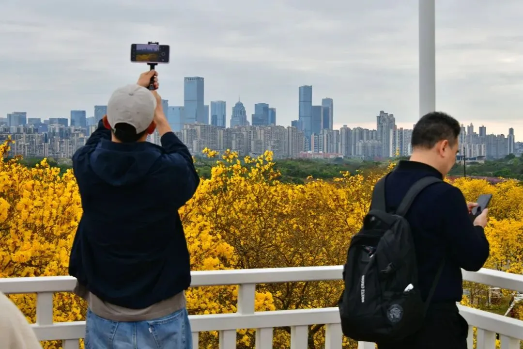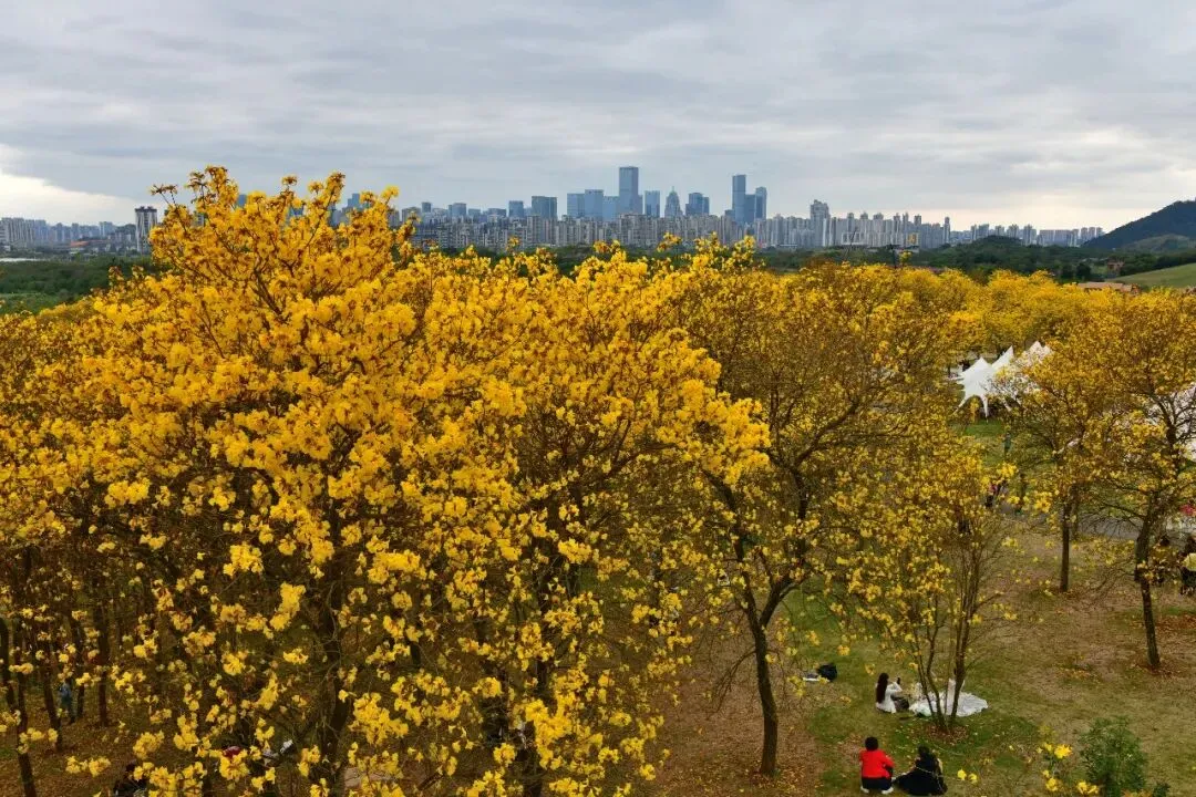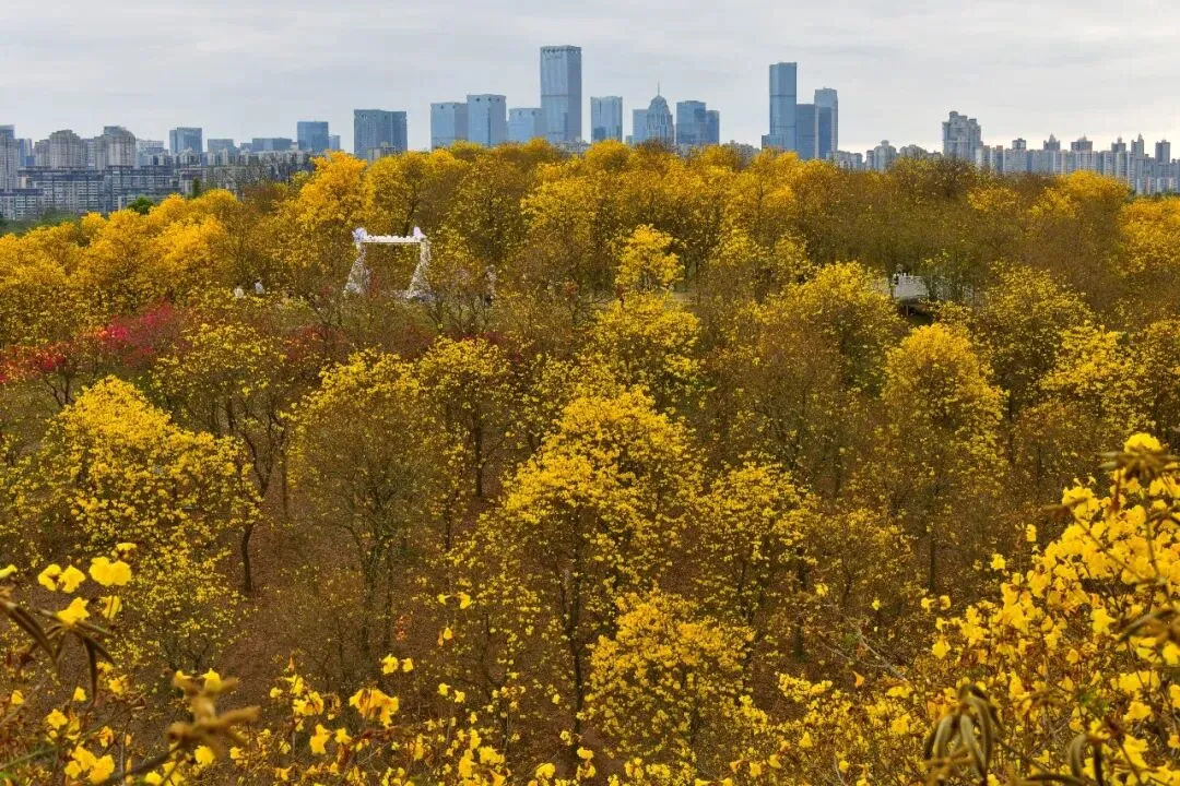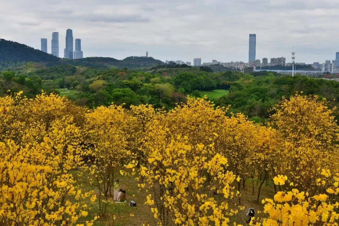 >南宁青秀山黄花风铃园观赏:风铃摇曳遍青山,满园尽带“黄金甲”