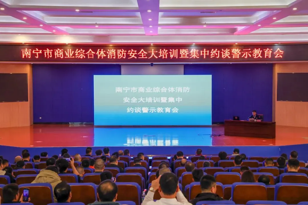 为切实加强全市商业综合体火灾防控能力,拧紧消防“安全阀”,3月11日,南宁消防组织召开了全市商业综合体消防安全大培训暨集中约谈警示教育会。来自全市各商业综合体的消防安全管理人共110人参加了此次培训。
