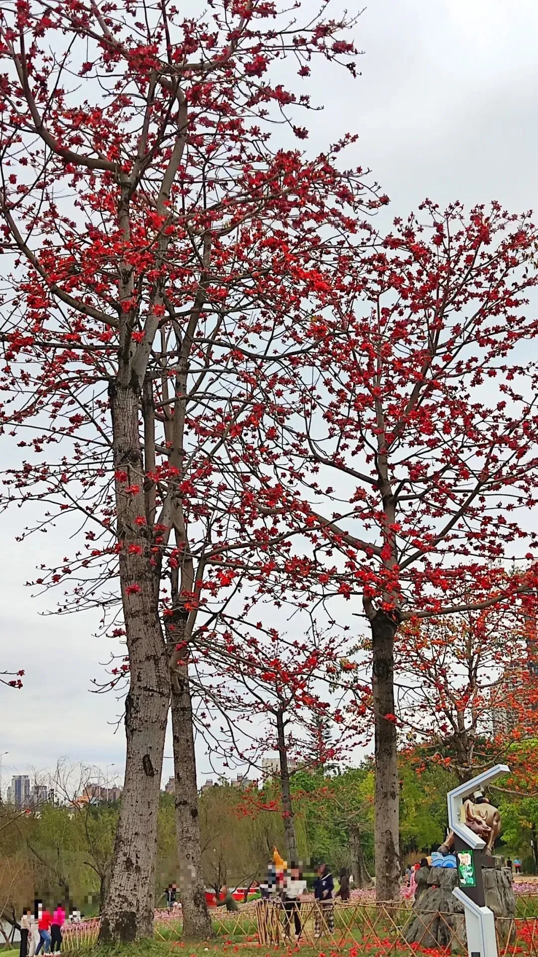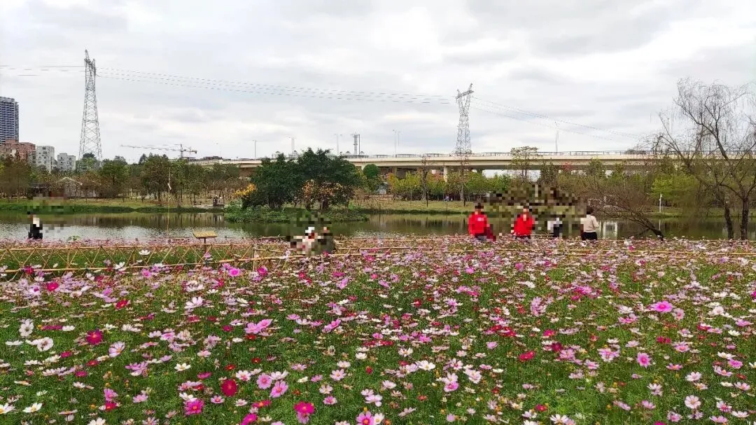 江南公园的用心,还体现在开花植物的多样化配置上。除了黄花风铃木,公园内还种植了木棉、大花紫薇、洋紫荆、格桑花等开花植物,形成四季花开景观。