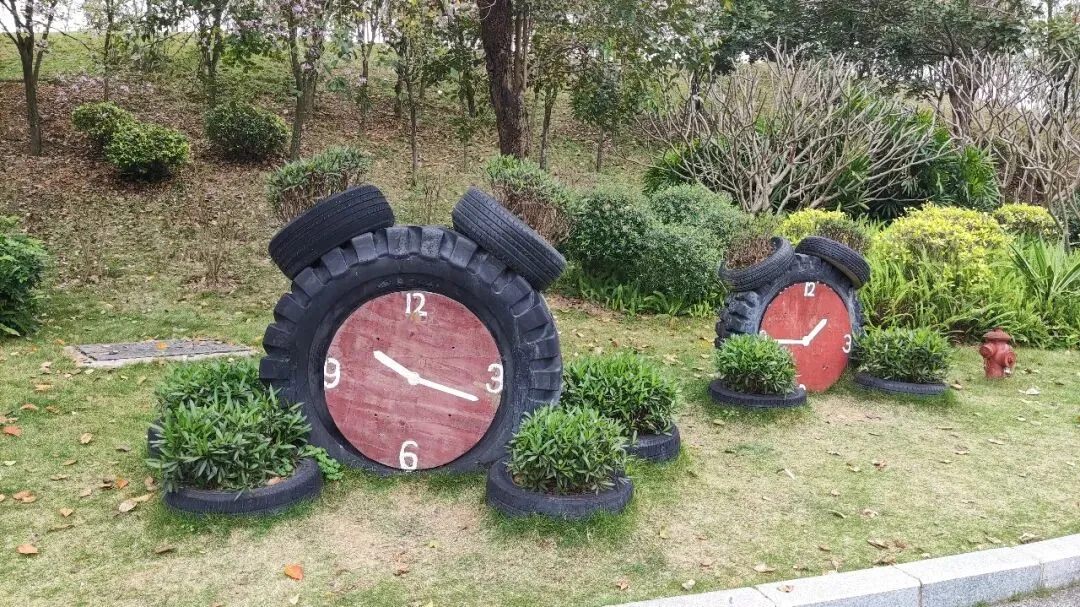 江南公园虽小,景观设计也是花了心思,轮胎时钟、环保乐园等,十分有趣。