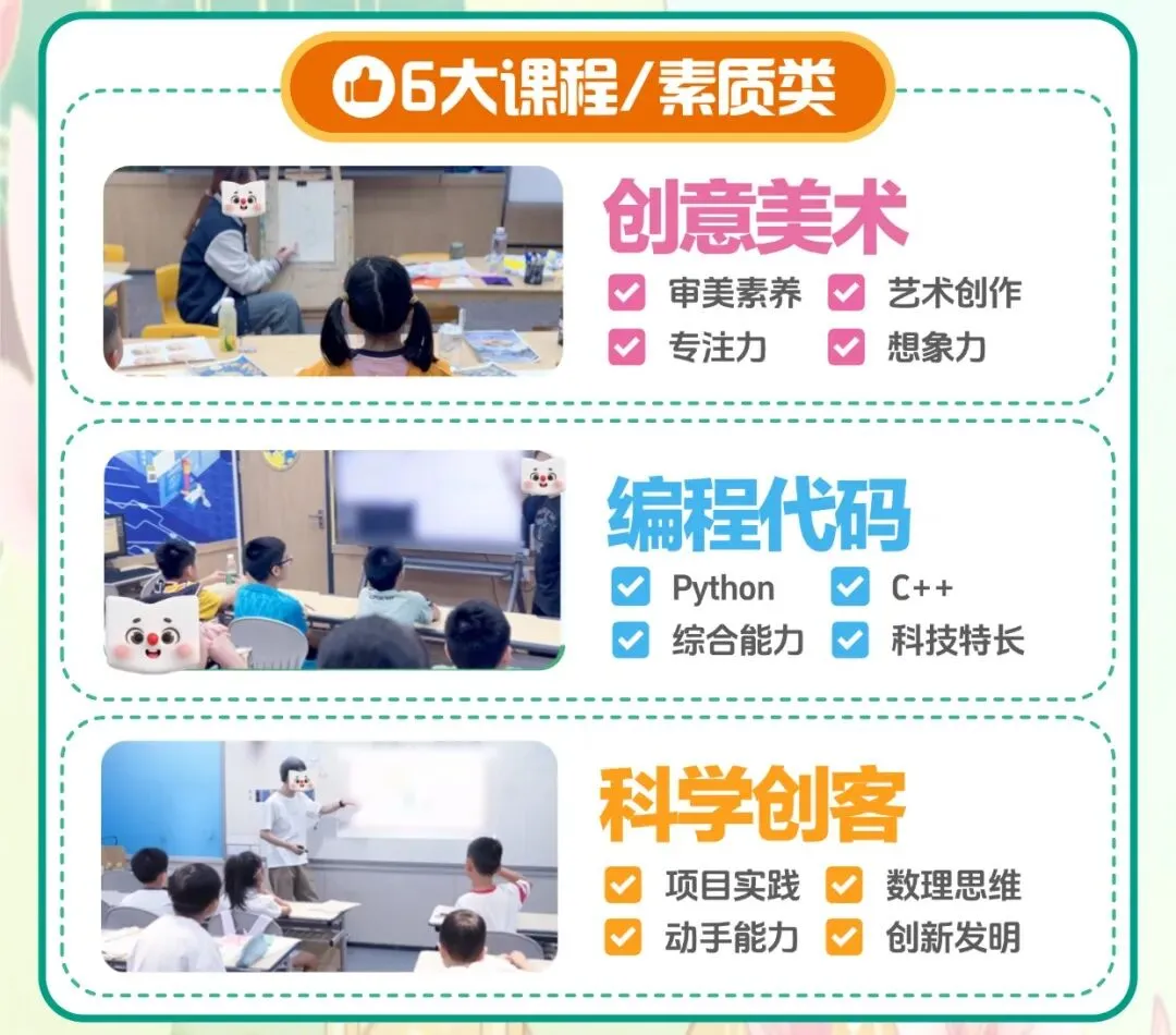 面对中小朋友,新东方有双语、脑力、博文等素养课程,也有美术、编程、科学等素质课程,还有游学营地喔~