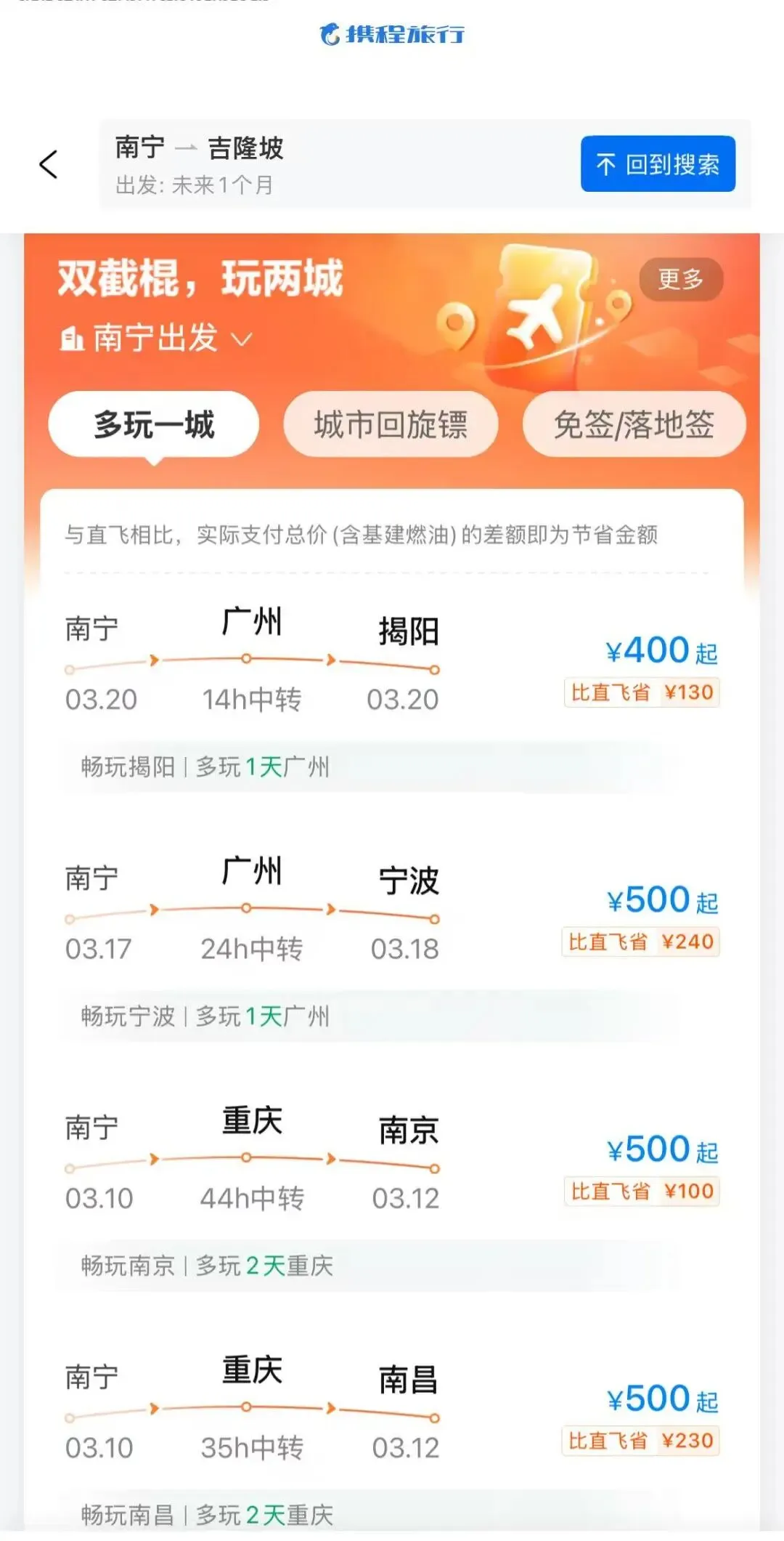 如果不追求直飞,中转一下,要省不少。一次出行,玩转双城,也是不错的选择。