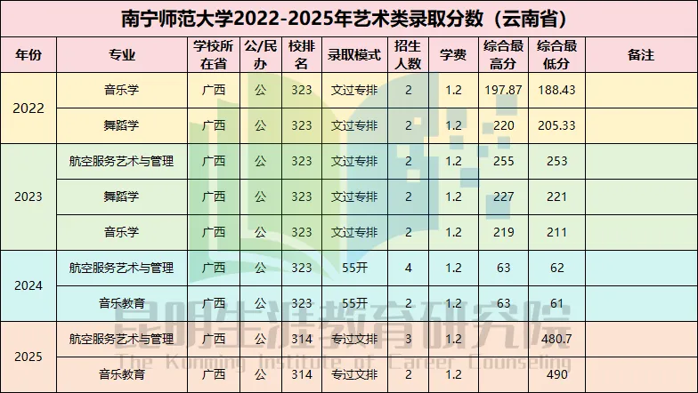 2. 招生人数影响:艺术类专业在云南招生名额有限,供需关系导致录取分数居高不下;