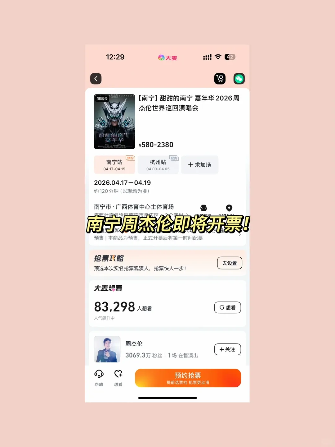 家人们!周杰伦南宁站终于定档!连开3天的青春盛宴,强实名下别再自己蹲点拼手速了,专业代拍+正规录入双方案,帮你锁死门票🎟️