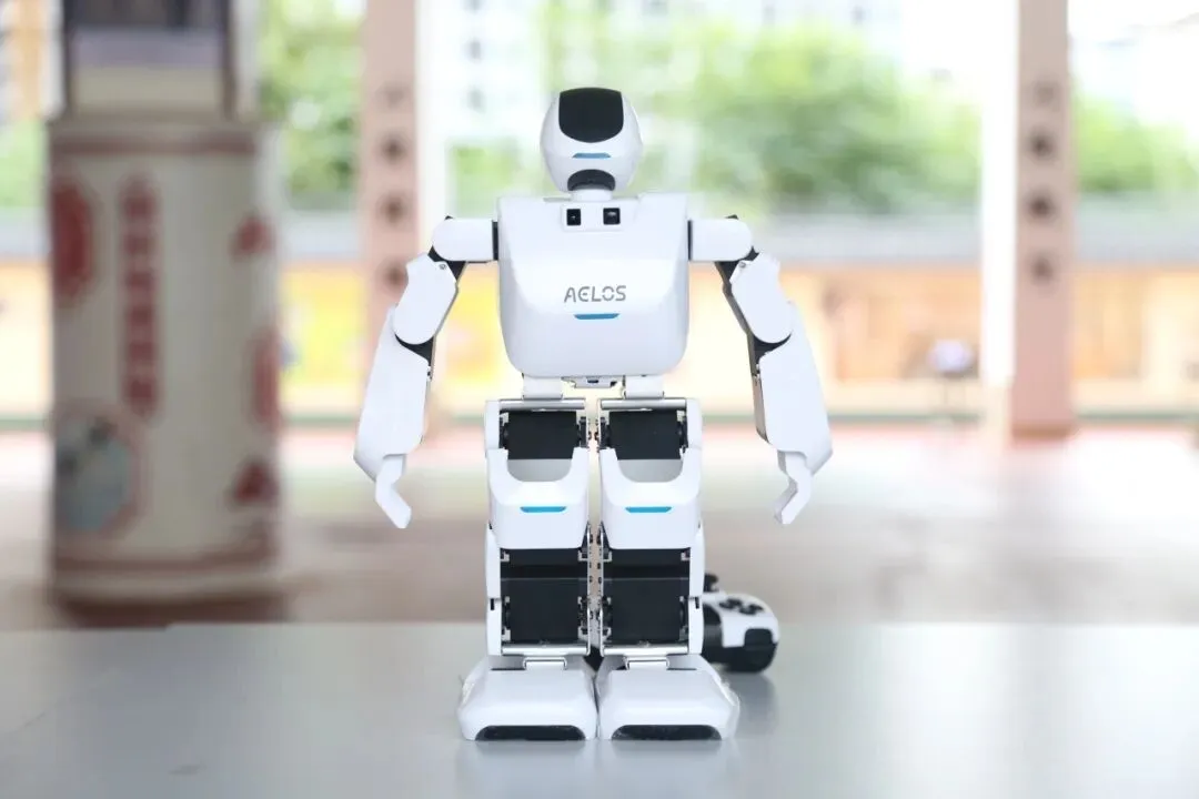 学生体验操作智能机器人和机械臂