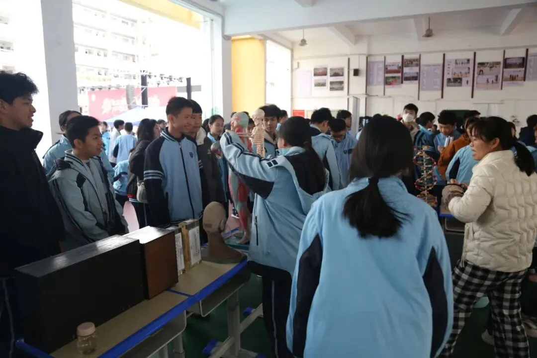 绳蕴发展中心架空层的学科作品展示区也人气爆棚。物理、化学、生物、地理四大专区整齐陈列着学子们的心血之作,精致的电路模型、趣味十足的化学实验成果、栩栩如生的植物标本、立体感十足的地形模型等作品琳琅满目,让人目不暇接。各展区的指导教师和学生讲解员为参观学子讲解作品背后的科学原理,引导大家在近距离观察与互动中,感受科技与学科融合的独特魅力。