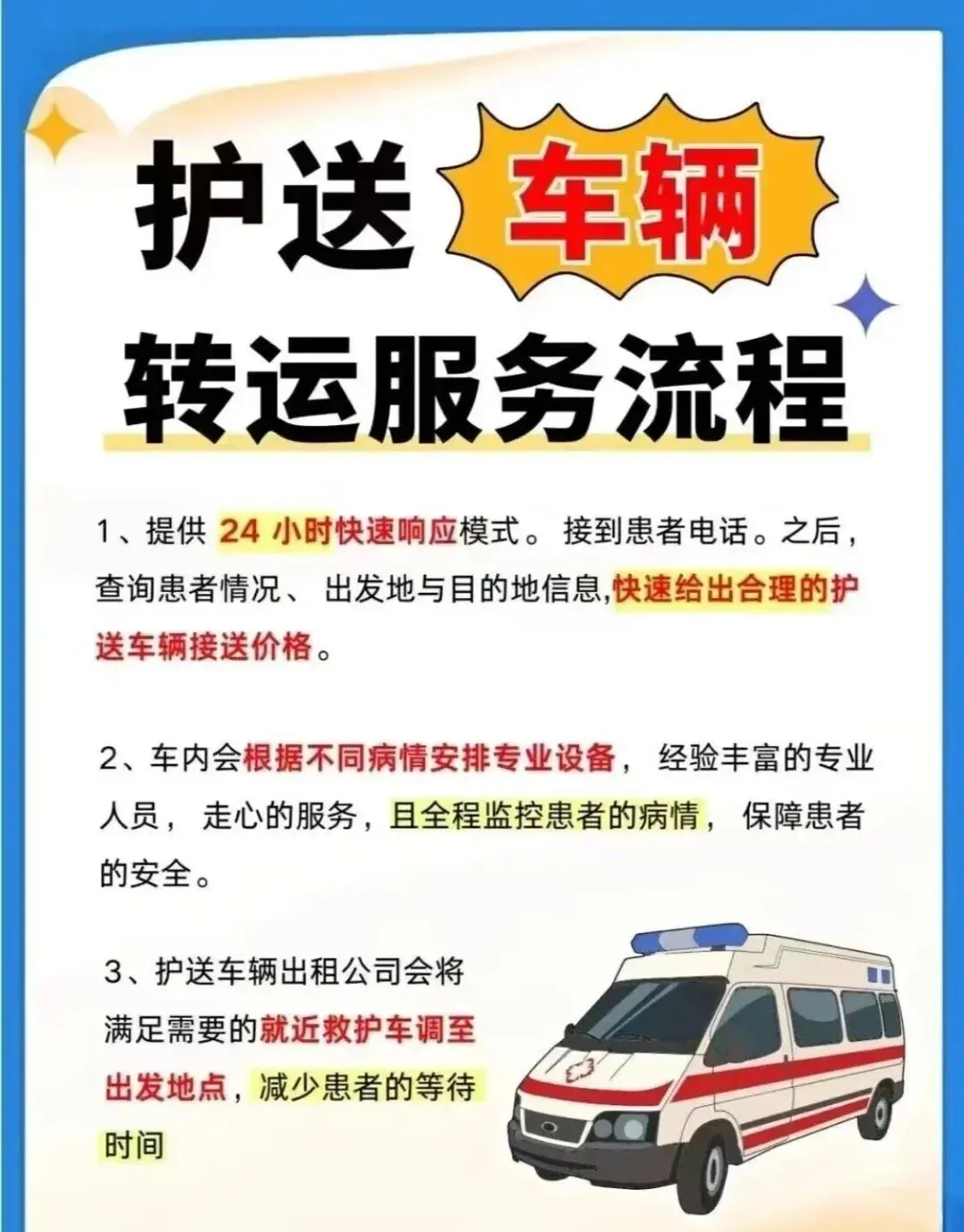 温馨提示:急症重症请立即拨打120。非紧急医疗护送需求,我们随时待命,为您提供专业、安心、可靠的转运服务。
