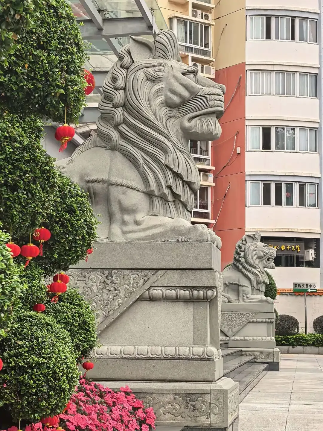 在一些城市的核心区域,为了保持市容市貌的整洁统一,城市管理部门可能会对临街建筑的装饰风格进行规范,这也可能限制了石狮子的随意摆放。