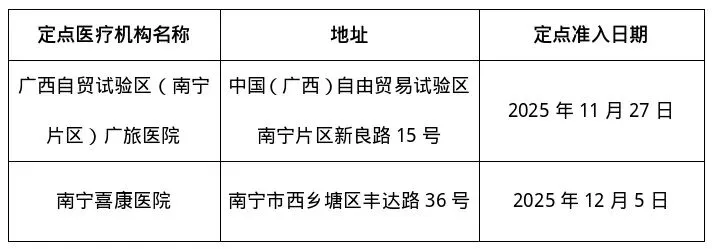 南宁市医疗保障事业管理中心关于确定广西自贸试验区(南宁片区)广旅医院等2家医疗机构为医疗保障定点医疗机构的通告