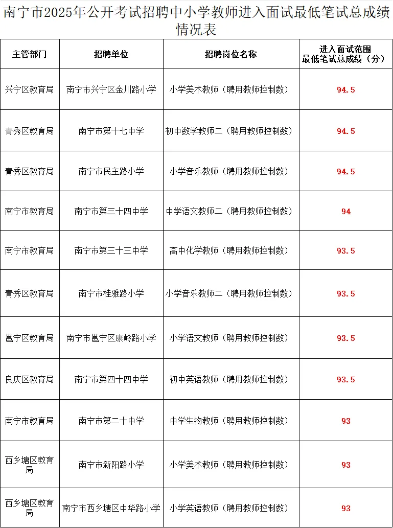 🔼南宁25年教招热门岗位进面分TOP10🔼