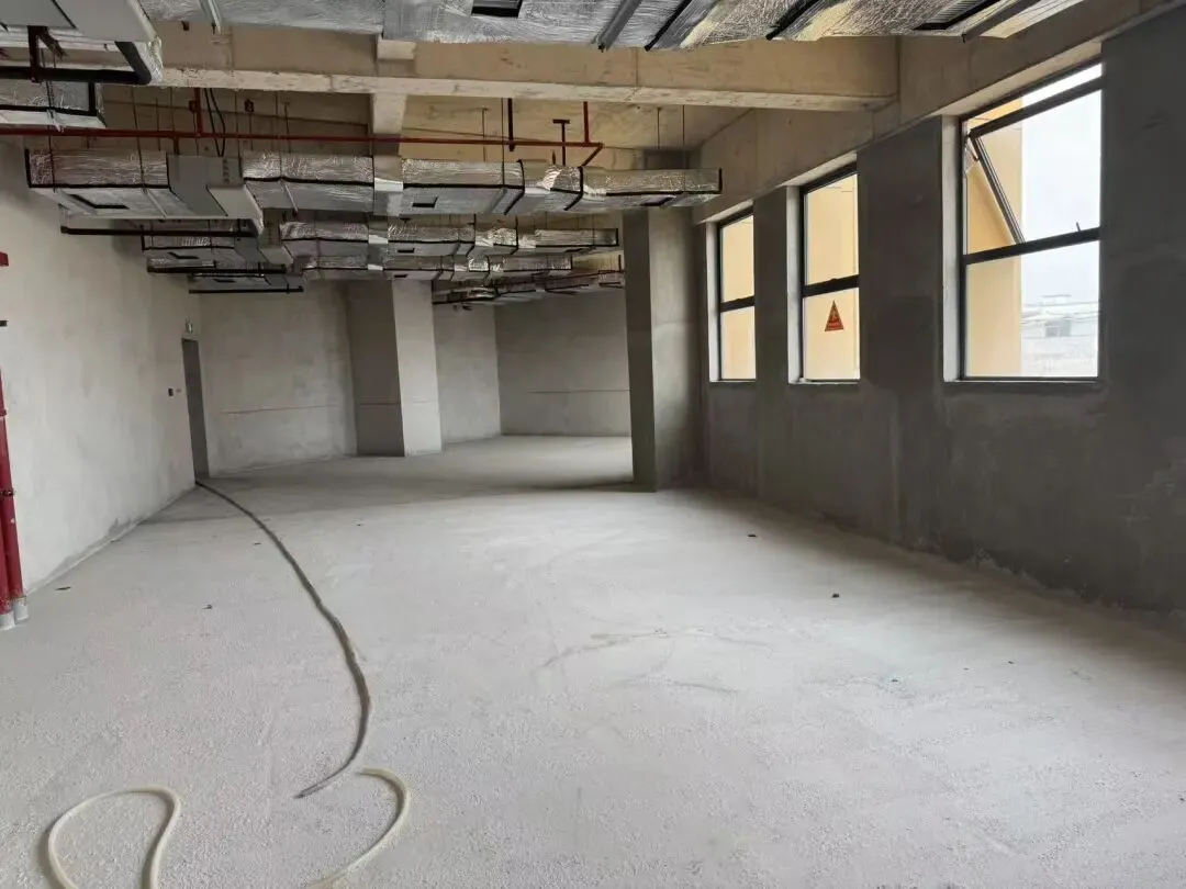 (三)目前大厦各项硬件配套设备设施已安装到位并验收通过,内部未进行精装修,为毛坯状态,楼地面为水泥地,内墙及顶棚为混合砂浆抹平;入户门为玻璃防盗门,窗为铝合金窗,已预留水、电接口。现已完成了外立面装修、中央空调系统、电梯、配电房等设备安装工作以及室外总平、市政水电管网、地下停车设备等工作。