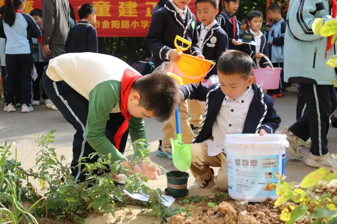 活动现场暖意融融。金阳路小学三(3)班、三(6)班的同学们化身暖心哥哥姐姐,协助友谊路幼儿园小朋友,共同栽种格桑花盆栽。大朋友耐心指导、悉心陪伴,小萌娃认真模仿、积极参与。小小的花盆里,盛满了大手牵小手的互助温情。