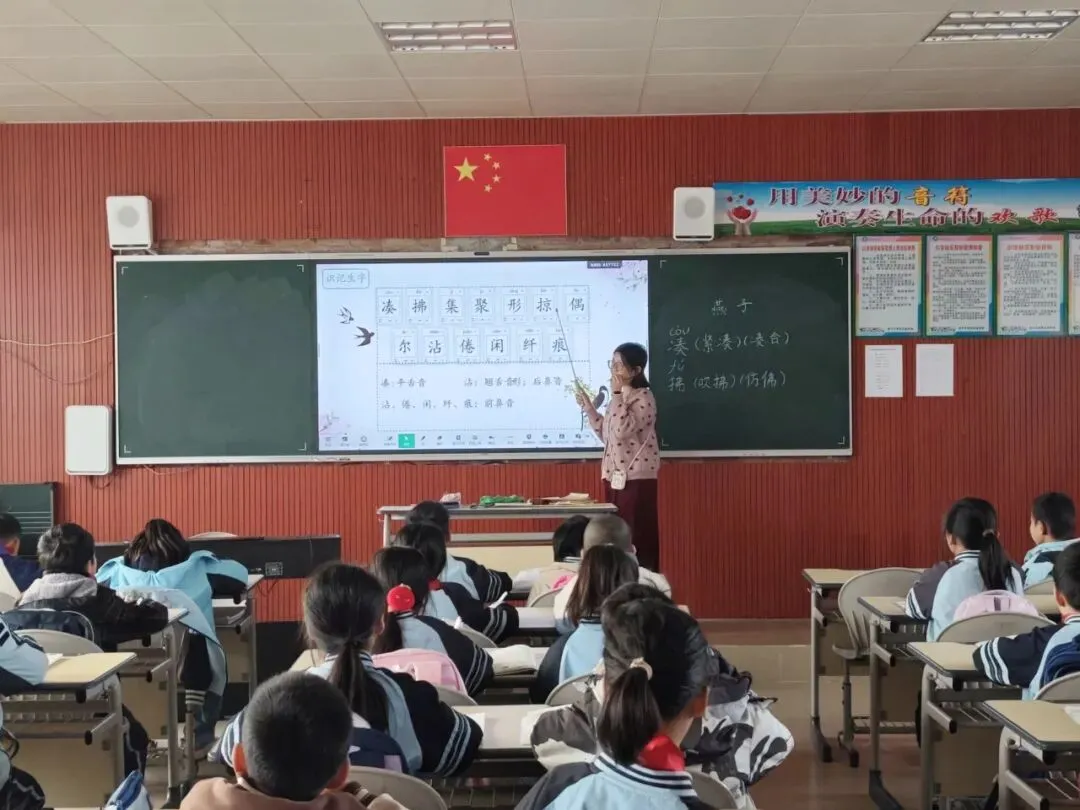 2026年3月11日上午,南宁市青秀区长塘镇定西小学开展小学语文的教研活动,石福金、黄滢秋两位教师分别执教低年级与中年级语文展示课,全校语文教师参与听评课研讨,在思维碰撞中探索"品质课堂"的建设路径。
