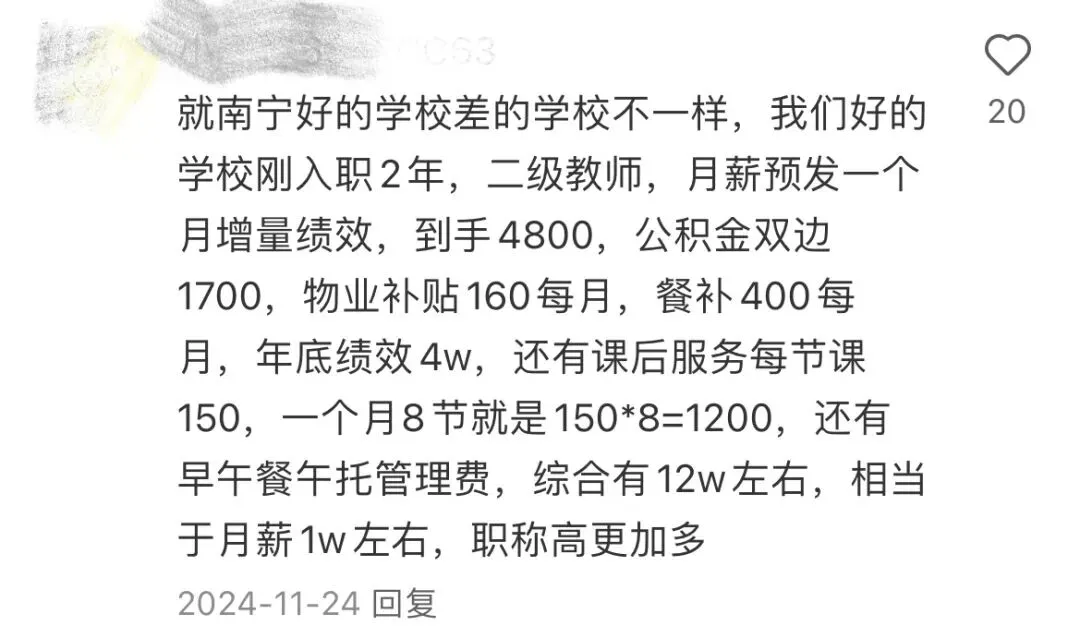 ✅南宁市武鸣区高中班主任:年收入6-7万,公积金双边1900+,餐补400元/月,乡镇补贴550元/月,班主任津贴250-350元/月