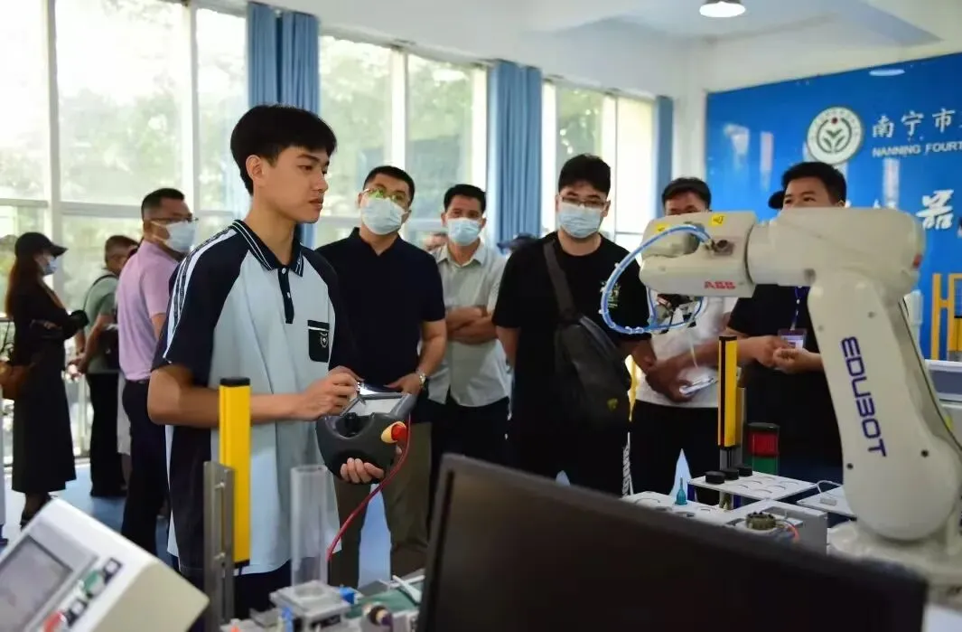 一次偶然,他走进了南宁市第四职业技术学校。在这里,他第一次摸到真实的实训设备,第一次站上技能大赛的舞台,第一次因为自己的专业技术被企业认可。三年后,他要么顺利升入大学,继续深造梦想;要么手握offer,自信走进职场,成为家里的骄傲。
