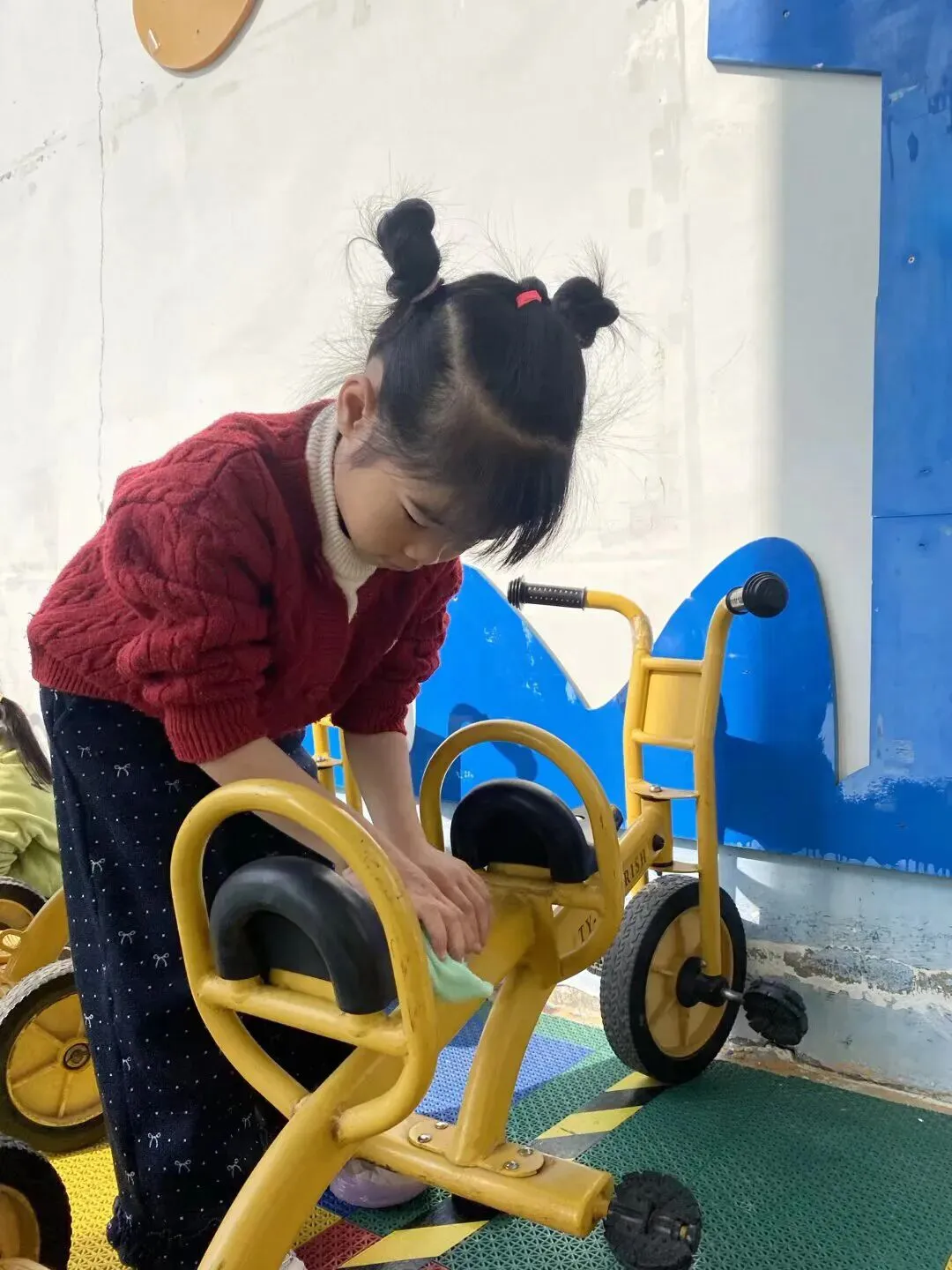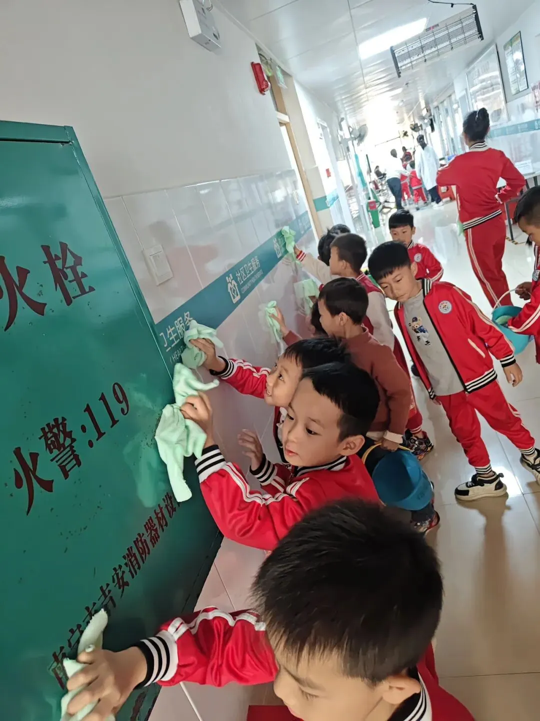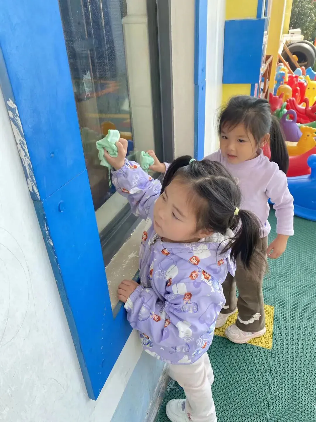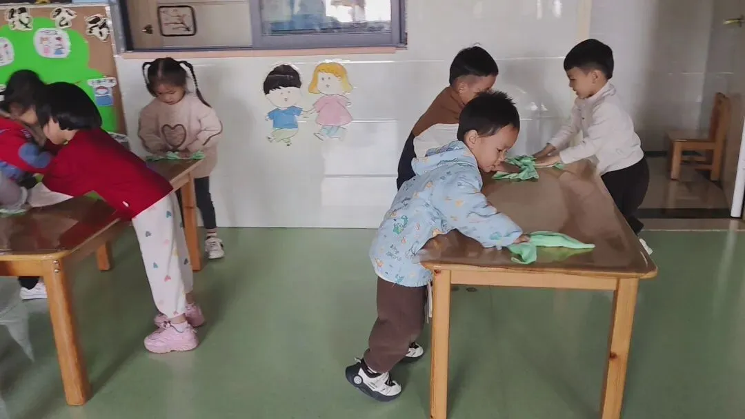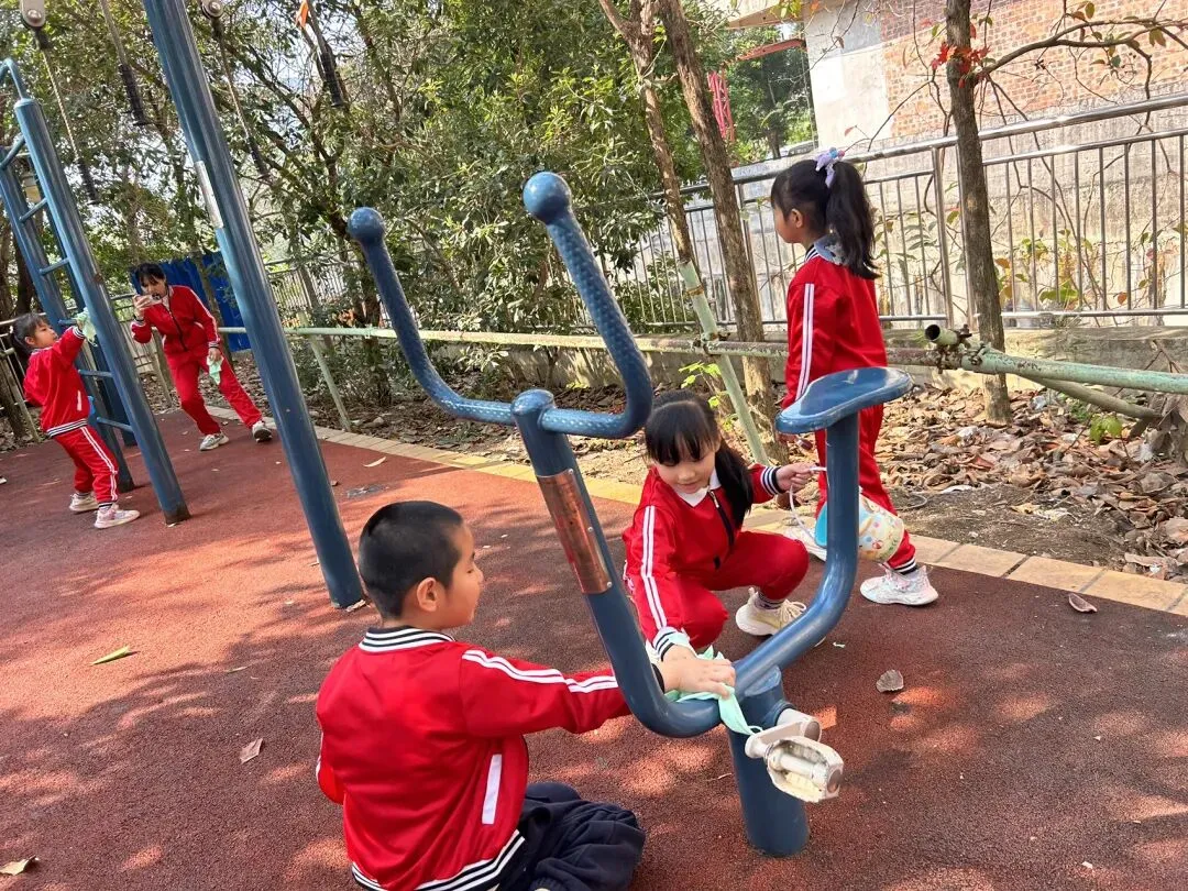 在幼儿园小宝贝们化身“小小清洁员”,他们小拿起抹布、小水桶、扫把,兴致勃勃地投入到志愿打扫活动中。“你擦攀爬架上面,我来擦下面!”“水脏了,我去换一盆!”……每个人都忙得不亦乐乎,将幼儿园打扫得一尘不染。