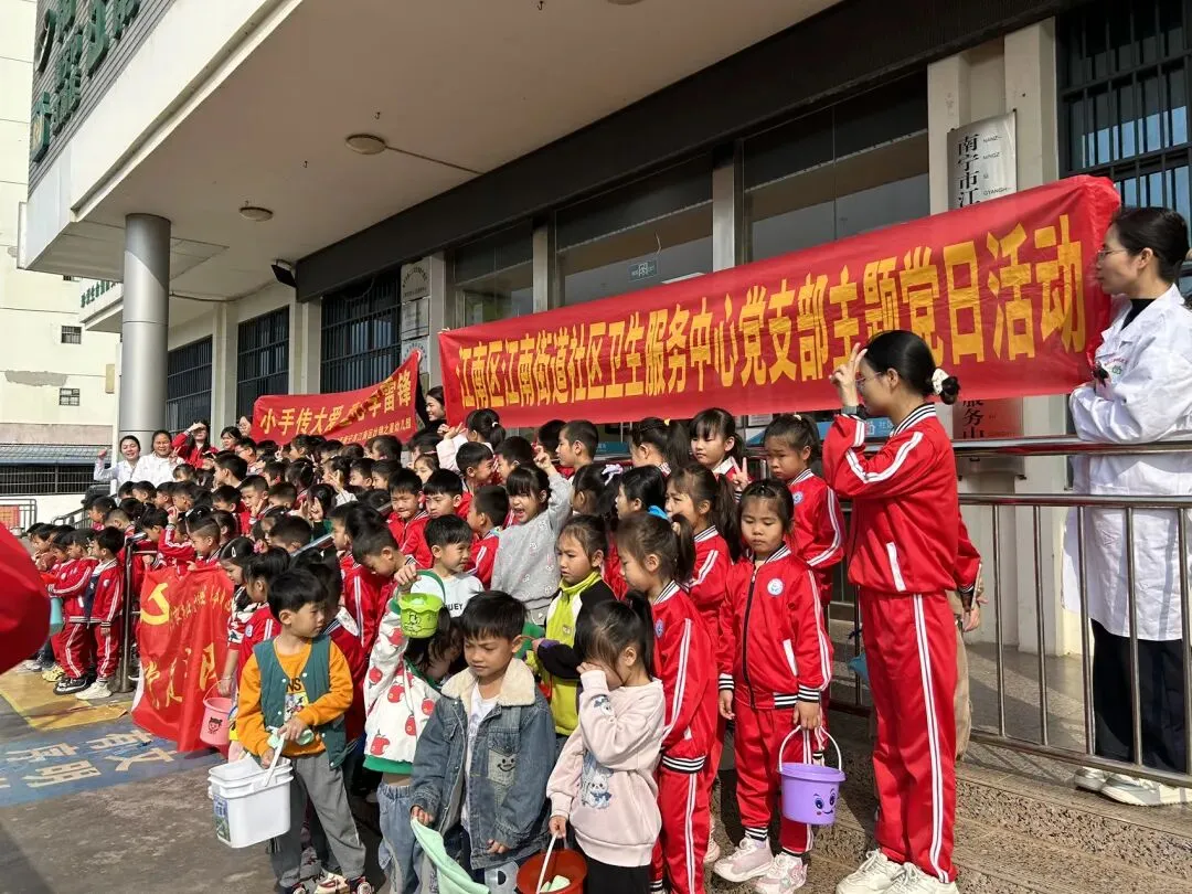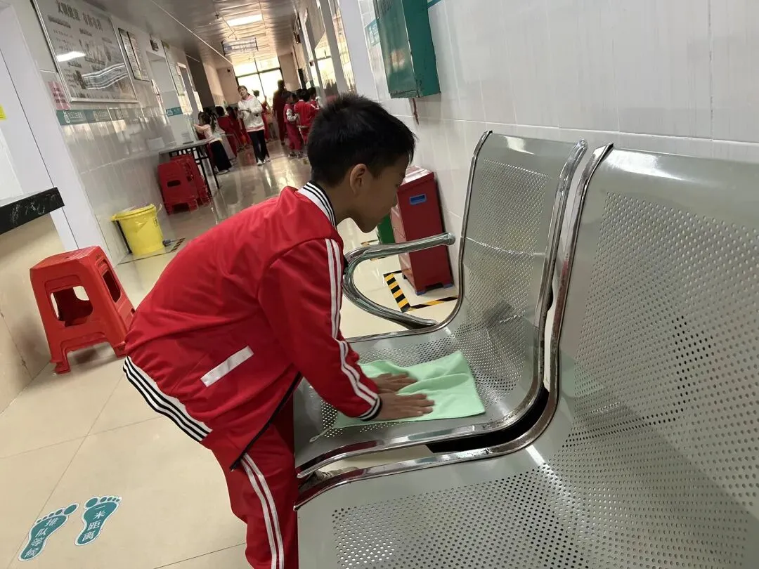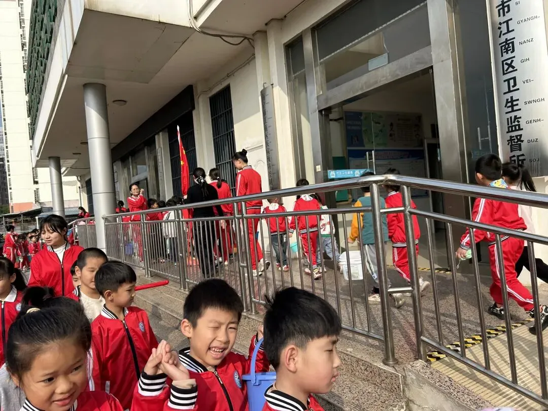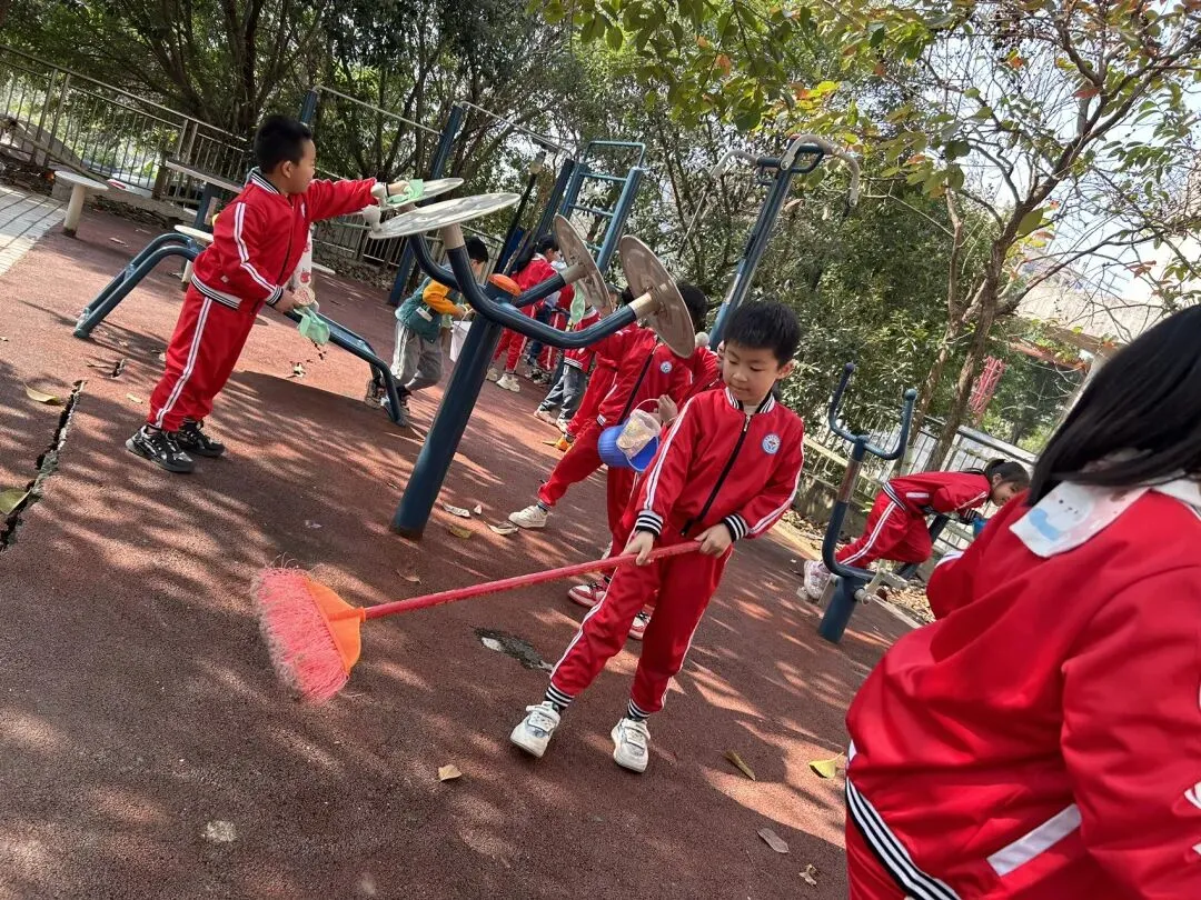 3月5日,在老师们的带领下,毕业班大志愿者、小志愿者们大手牵小手来到江南社区卫生服务中心、信华府小区。小小雷锋志愿者们在老师与社区医生阿姨、志愿者带领下,清理打扫周边垃圾、擦拭公共器材,扶自行车,他们还变身“暖心小帮手”。
