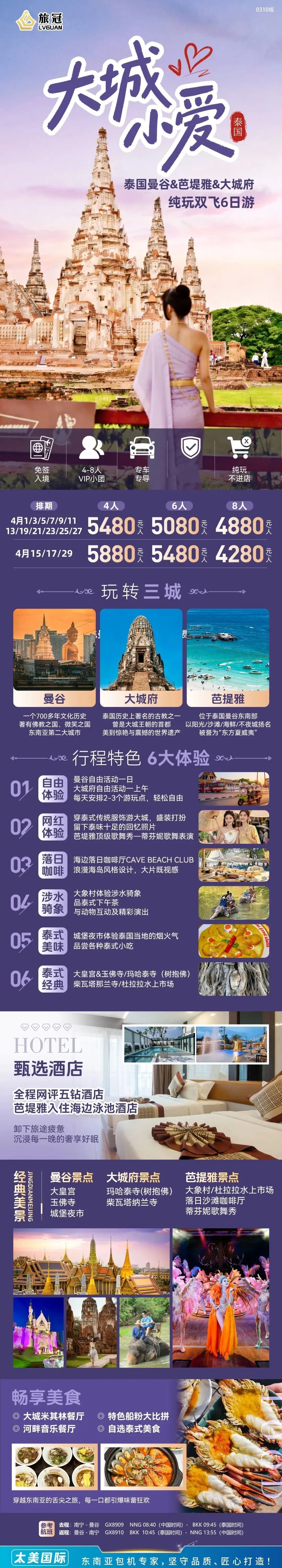 接下来小编就把这款行程带给你,用6天时间,曼谷的繁华、大城的厚重、芭提雅的浪漫,带你看见泰国的A面与B面。