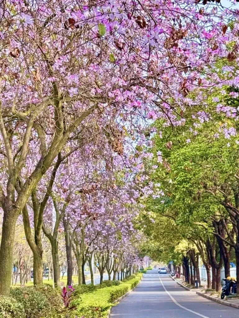 良庆区道路两旁的洋紫荆