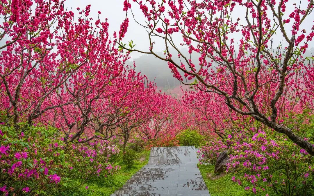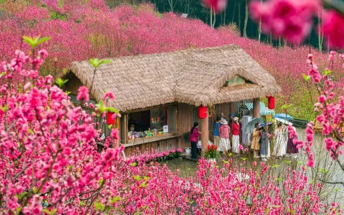 桃花盛放的景致