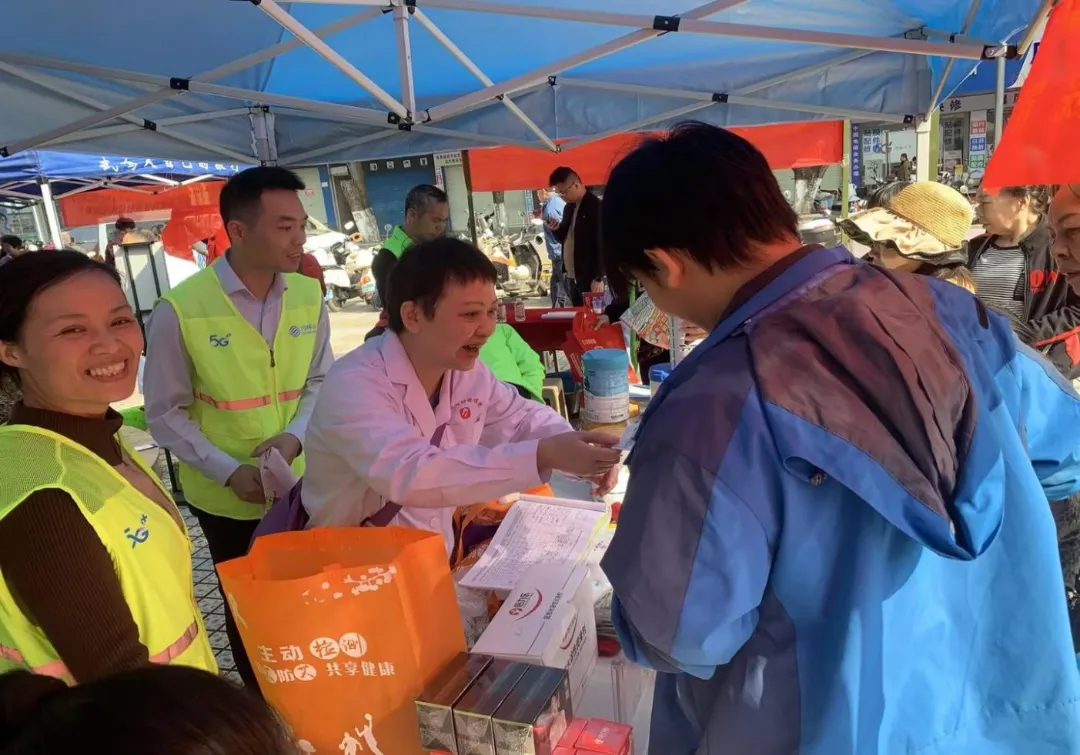 医务人员向群众发放宣传折页