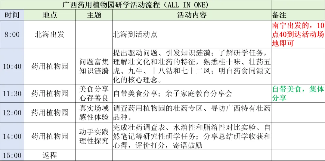 活动时间:2026年03月15日(周日),10:40-15:00(研学场地活动时间);8:00-18:00(北海出发,含往返时间);9:30-16:00(南宁出发,含往返时间)