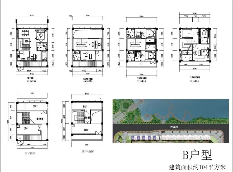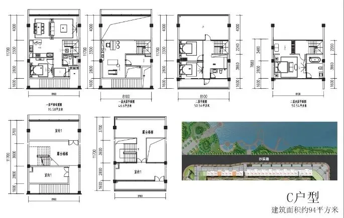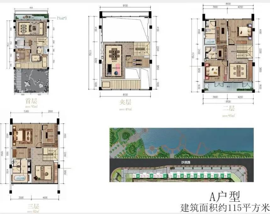 商墅面积:93.96平、104.53平、114.65平、114.82平