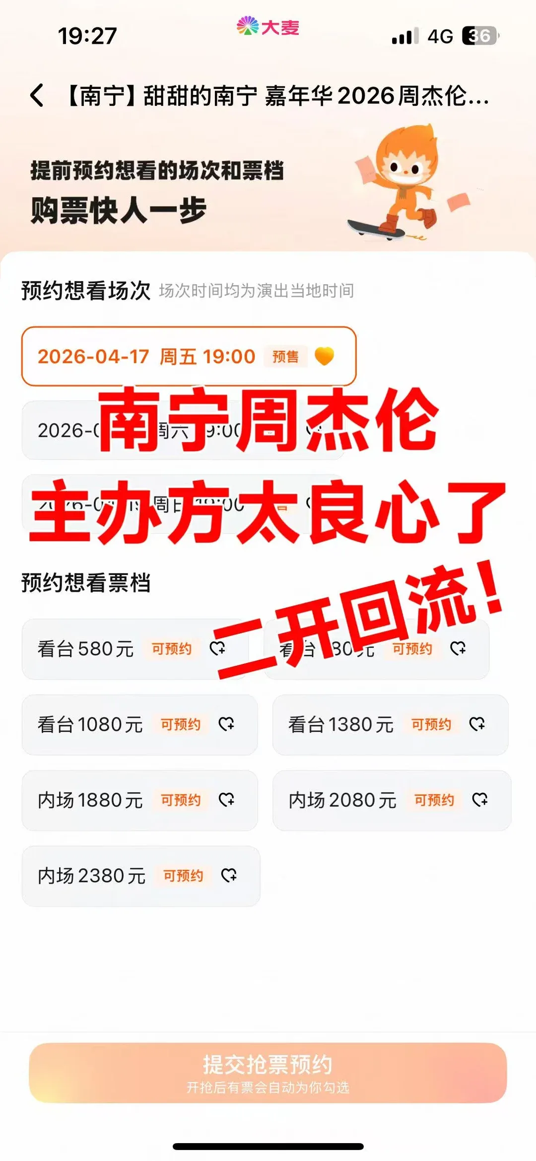 首开票没抢到的杰迷别慌,二开还有机会,时间预计在3月下旬左右(结合首开3月12日场次,合理预估)!宝子们一定要在评论区蹲好,我一收到消息就立刻通知大家!