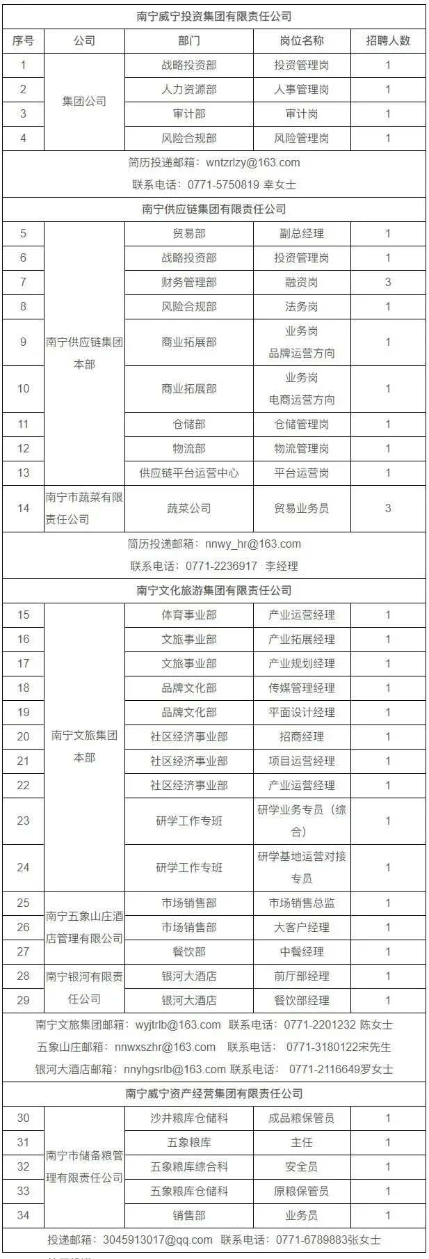 本次招聘采取网上报名方式,报名截止时间为2026年3月20日, 具体岗位要求和简历投递邮箱、联系电话详见附件1,符合条件的人选请下载《南宁威宁集团应聘登记表》(附件2)填写发送相应邮箱。邮件主题及应聘登记表命名为“应聘公司+岗位名称+姓名” ,并选择邮件回执。每位应聘者仅能选择一个职位投递简历,请勿重复投递。