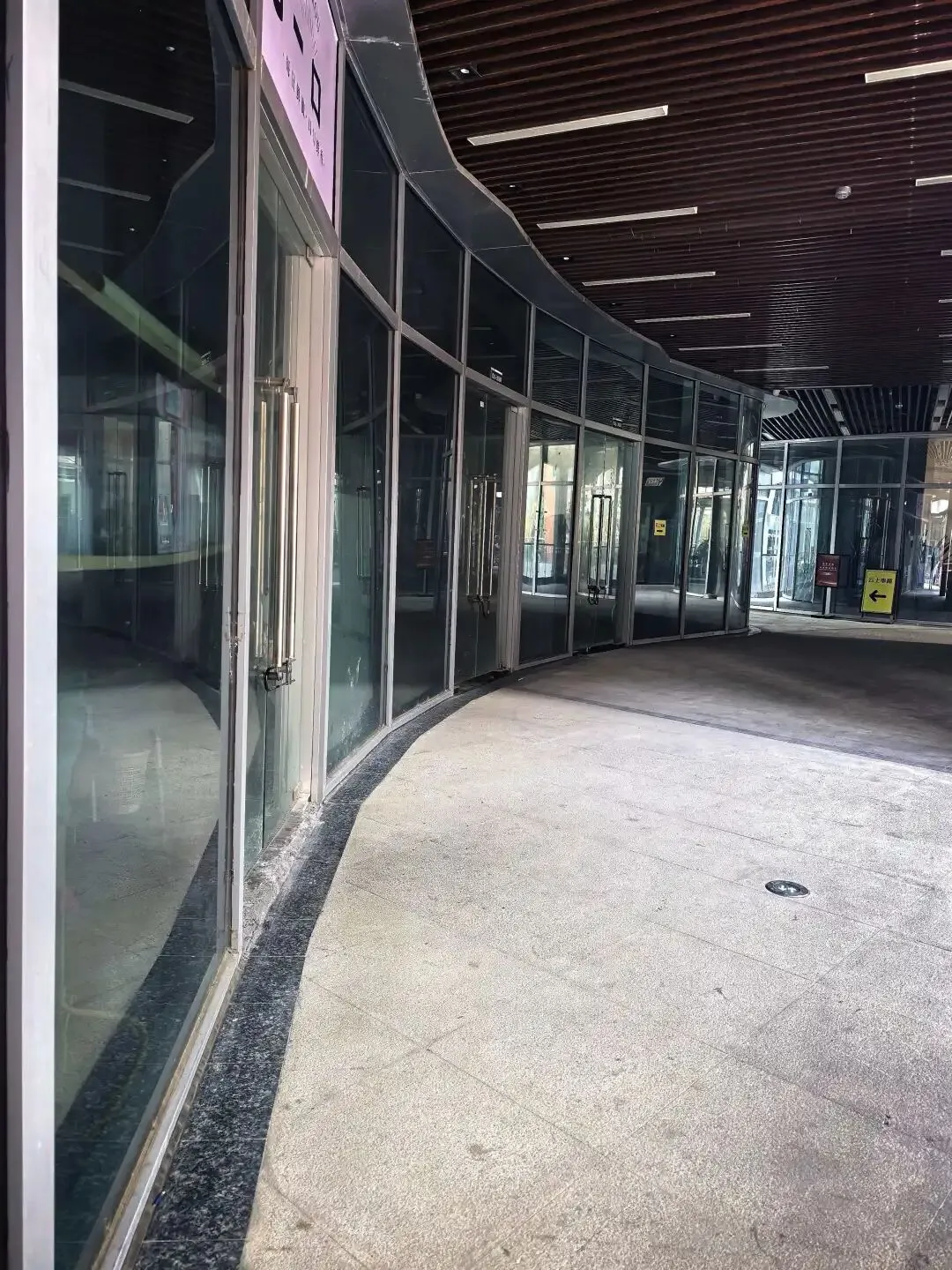 - 荒废的入口:原本设计精美的玻璃门廊,如今积满了灰尘,无人问津。