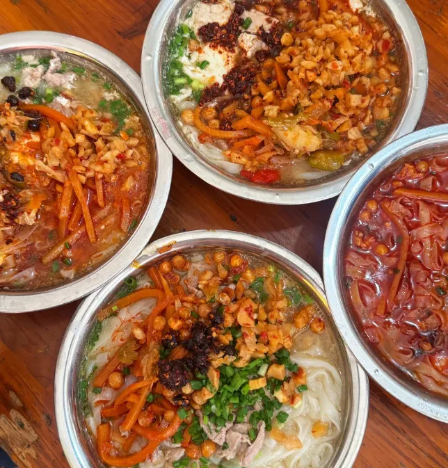 早餐得来碗煮粉,汤头是熬出来的,不是兑出来的。中午整顿牛杂火锅,晚上就在路边摊撸串,果酱烧烤是一绝,酸甜辣在舌尖打架。这里的人嗜酸,不是为了开胃,是为了续命。