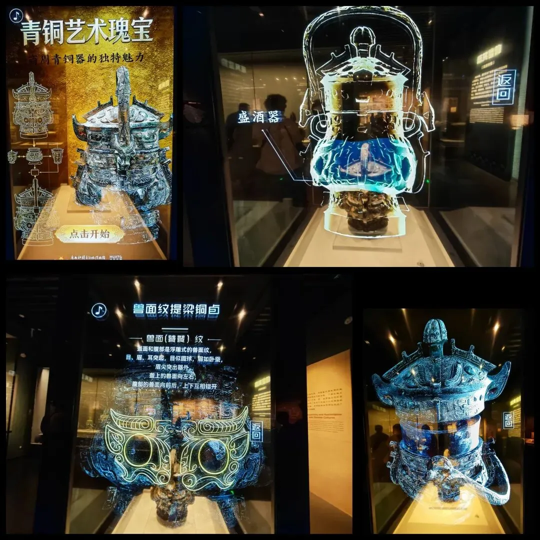 见到第一眼,便觉得它器型饱满,立体清晰,甚是漂亮。而透明互动展柜的“实物+数字”模式,能让我对比着观察细节,更通透的了解到文物的实质。 汉代有七个之多,其中三个貌似中华文明产物: