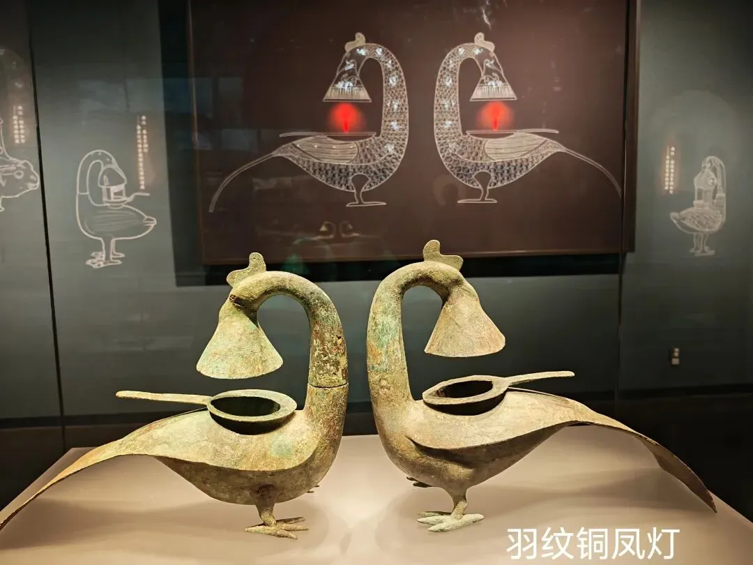 3.可拆装,能导烟,灰入水,相当于“长信宫灯”般实用环保,造型亦优美的“羽纹铜凤灯”。