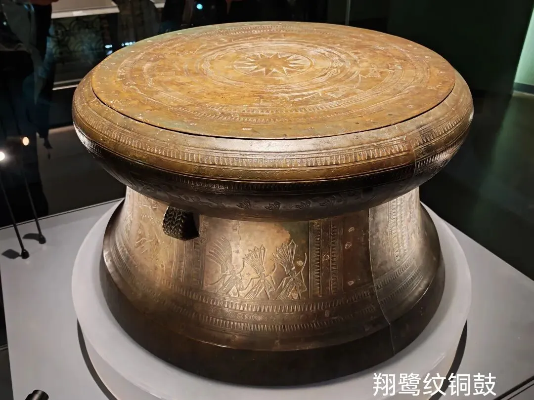 有一个是纯正地方民族特色的产物:8.壮族大铜鼓“翔鹭纹铜鼓”。
