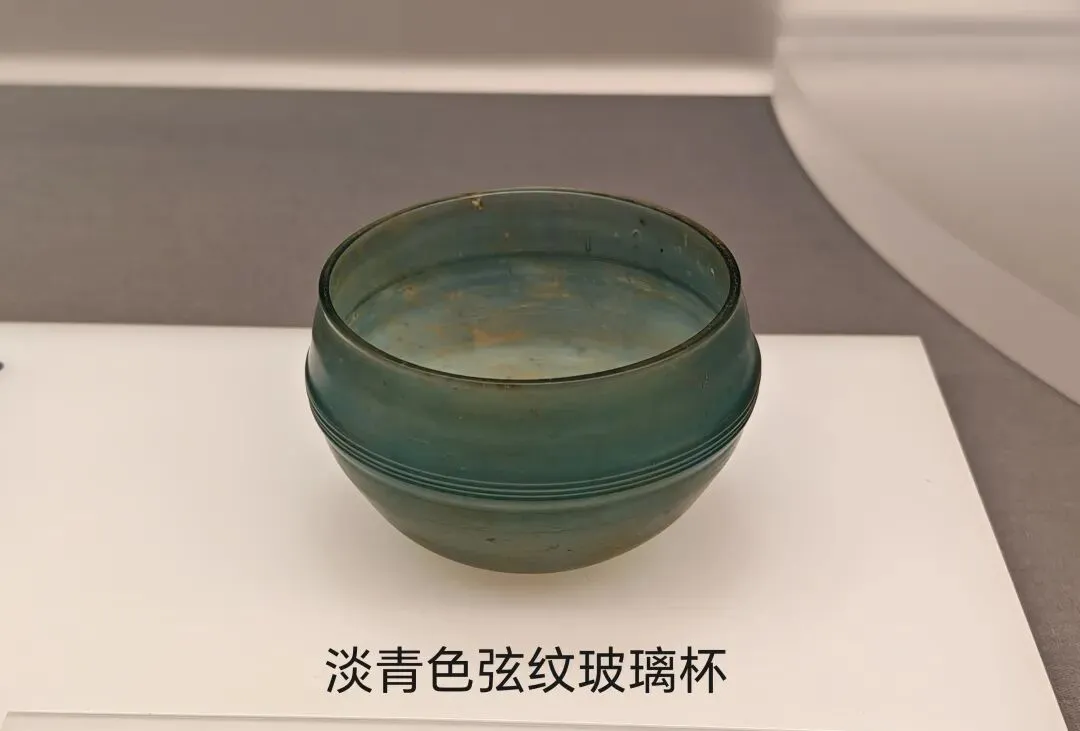 透过历史的纹路,能看到我国古代民族丰富多彩的生活图景。至于它是不是用于敲响,于我而言也没有那么重要了。 汉代的镇馆之宝还有一个是海上丝绸之路的产物:9.“淡青色弦纹玻璃杯”。