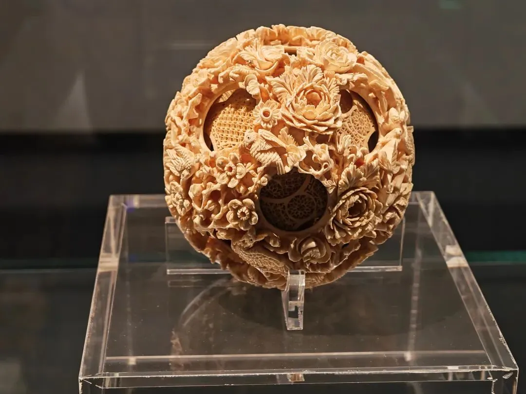 又学到了🤔😂。 这十个镇馆之宝所在的不同展厅中,还有众多吸引我的其他文物。 自带吸管儿的荷花瓣秋操杯。虽然包括辽宁省博在内的多家博物馆都拥有同款,不过还是见到就喜欢。 不得不承认,金光闪闪的物件自带光环,无论放在哪个展厅,都能轻易吸引到我的目光😂。 吸引我的还有四号展厅里精于工,匠于心的艺术珍品们。 比如每层皆可转动,彰显超高工匠技术👍的象牙镂雕九层套球和各种玉制品。