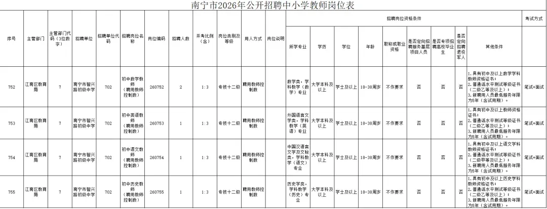 岗位要求:本科及以上学历,专业对口,具有初中及以上教师资格证,普通话等级证书,年龄45岁以下。