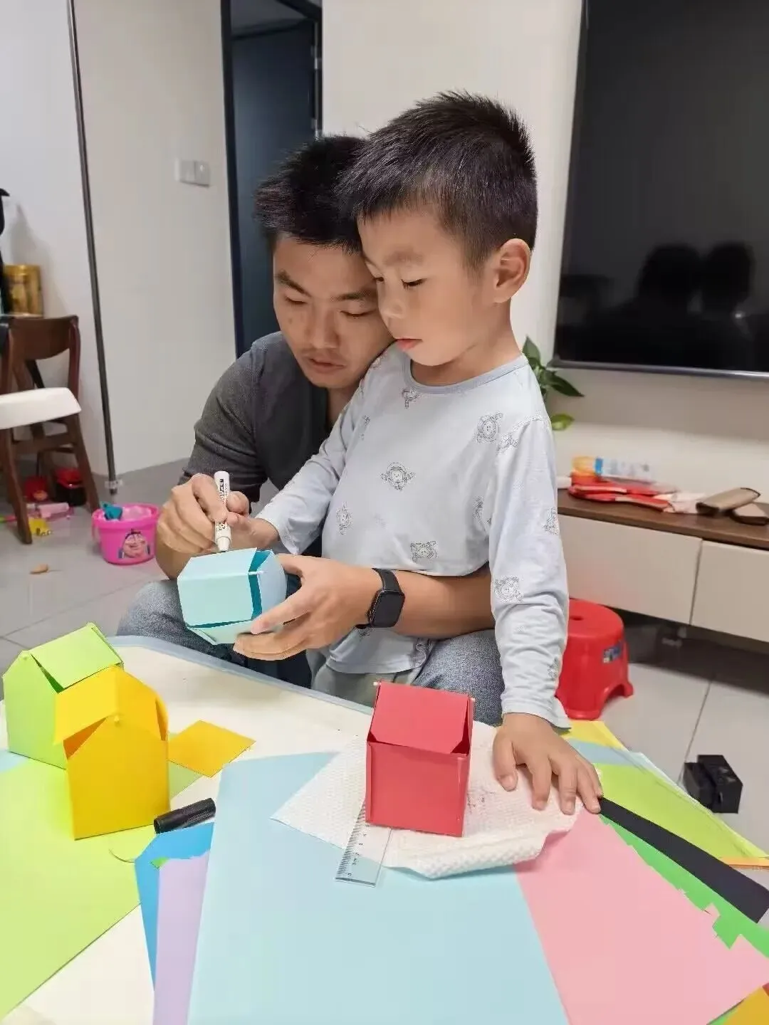 此次亲子环保手工评比活动,增强了孩子和家长的环保意识,在动手合作中增进亲子间的情感交流。