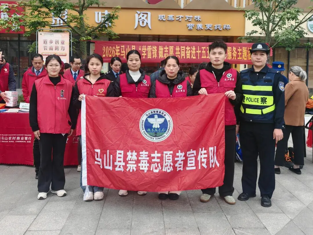 2026年3月5日,马山县禁毒工作办公室联合县委社会工作部、共青团马山县委等部门单位,在县人民广场2026年马山县学雷锋志愿服务月主题活动启动仪式现场,以“学雷锋 做志愿 共同奋进‘十五五’”为主题,同步开展“弘扬雷锋志愿精神,筑牢全民禁毒防线”禁毒宣传活动。