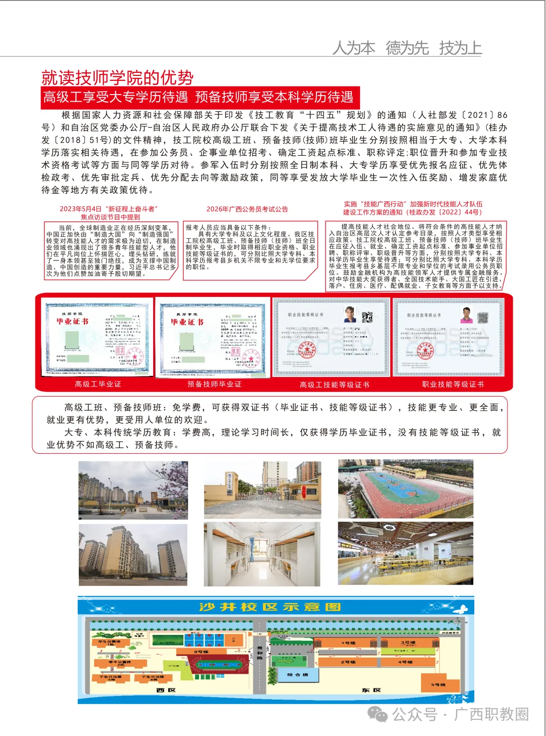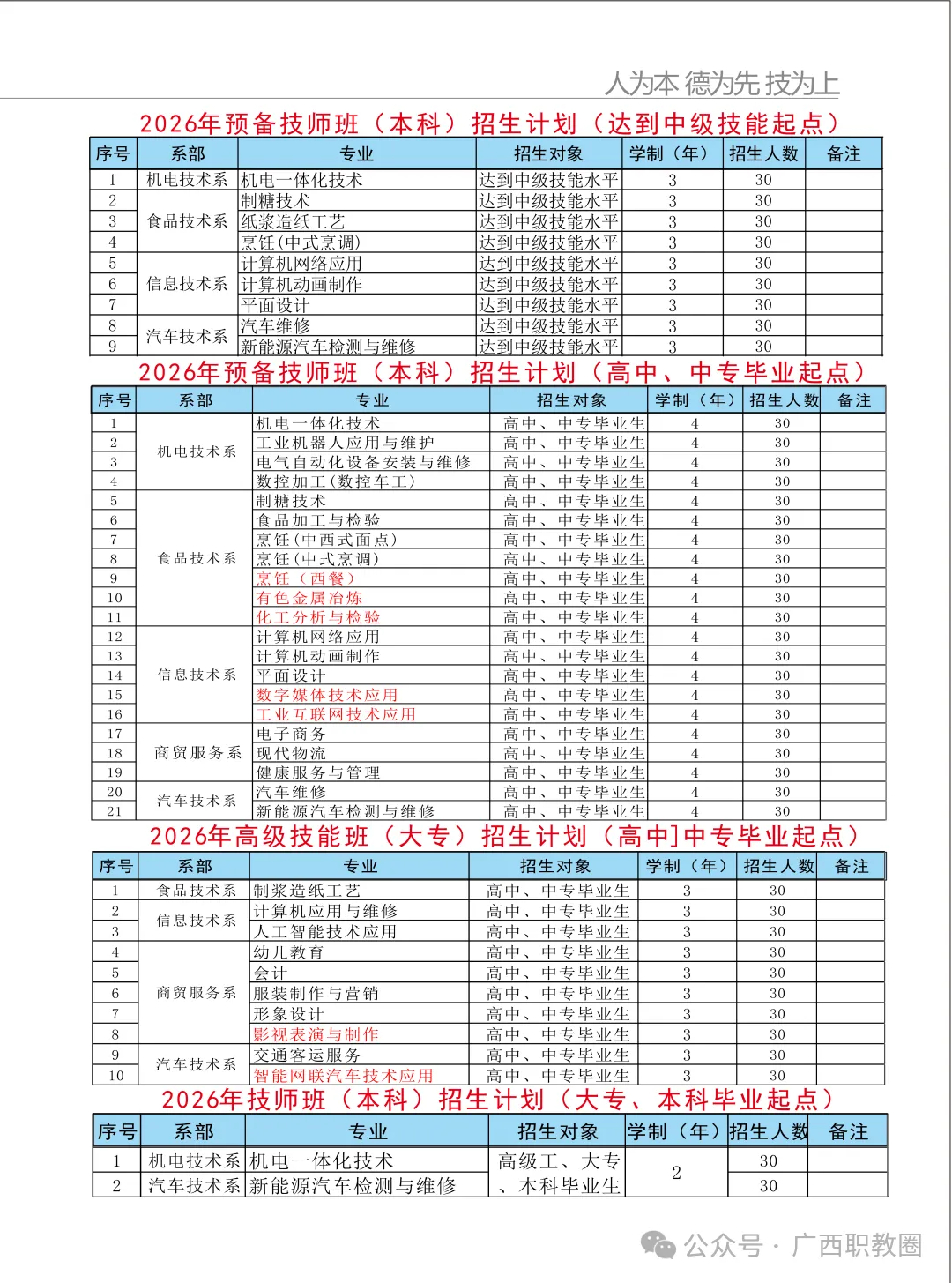 学院设有食品技术、机电技术、汽车技术、信息技术,商贸服务五大教学系,开设35个专业,涵盖制糖技术,人工智能技术应用等,紧密对接区城产业需求。制糖、造纸为品牌特色专业,另有3个自治区示范性特色专业,4个自治区重点专业。构建中级工、高级工、预备技师三级培养体系(分别对应中专、大专、本科学历待遇),目前高级工和预备技师学生占比达74%。