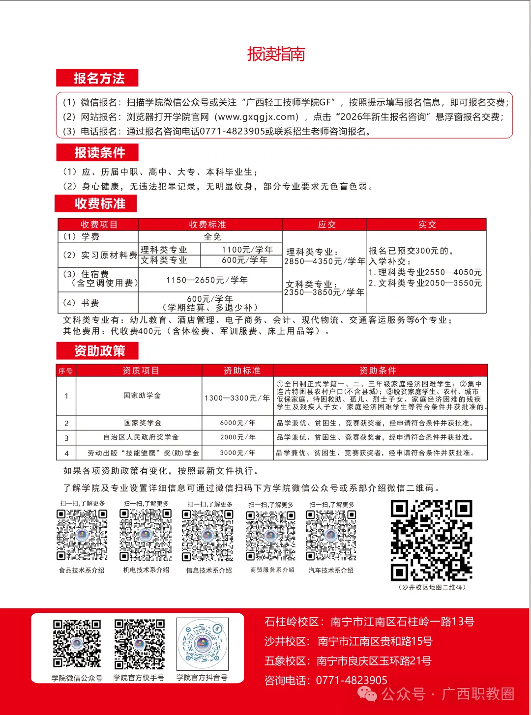 学院现有石柱岭、五象、沙井三个校区,总用地面积约185亩,建筑面积11万平方米,规划用地1225亩的六景新校区正积极筹建。