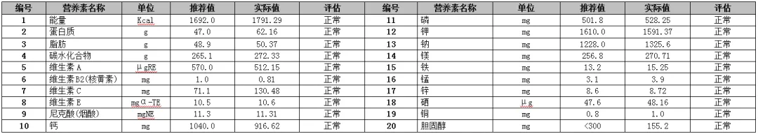 2.个别营养素评估值在短期内偏高或偏低属正常范围,我们会在以后的食谱中控制摄入量,使学生在一段时间内摄入的营养素值均达到正常值。