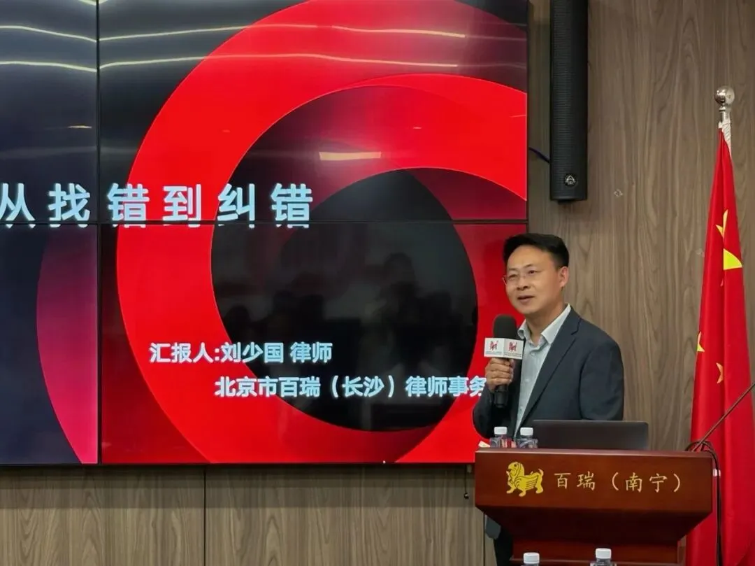 在司法实践中,民事再审程序是维护司法公正的最后一道防线,也是律师专业功底的“试金石”。百瑞(南宁)分所作为南宁市律师协会教育培训基地,本次培训特别请了北京市百瑞(长沙)律师事务所创始合伙人、执行主任刘少国律师莅临南宁分所,带来了一场题为 《民事再审:从找错到纠错》 的深度分享。刘少国主任结合其承办的最高法再审改判等典型案例,为南宁市律师、百瑞(南宁)分所同仁拆解了民事再审的启动逻辑与实操要点。