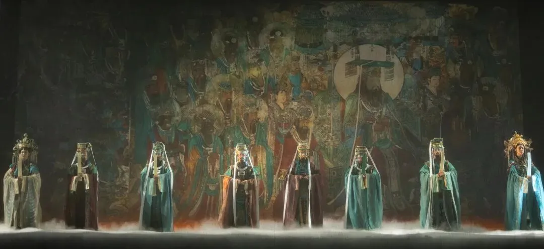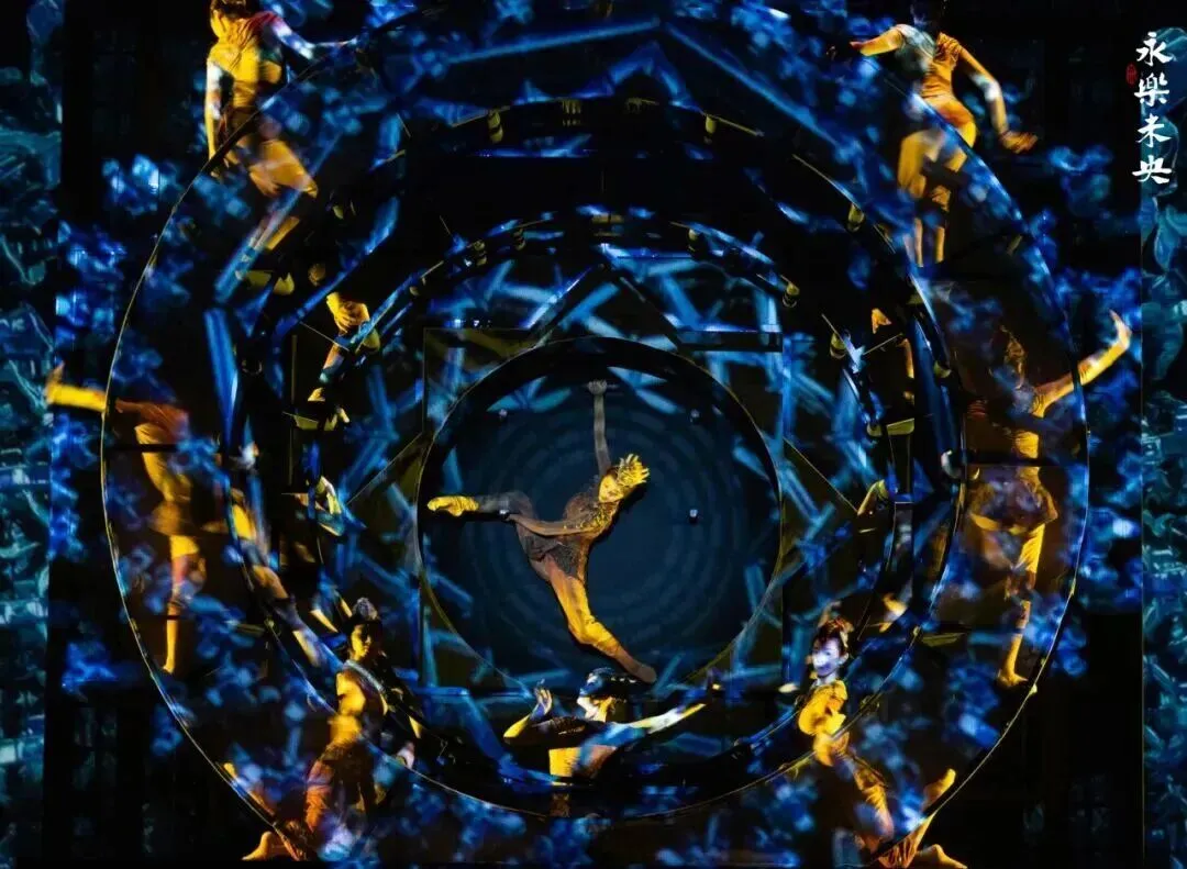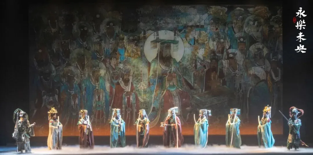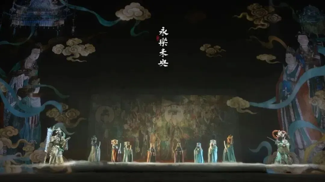 舞剧《永乐未央》以首批全国重点文物保护单位山西芮城永乐宫为题材,以1950年代因修建三门峡水利工程,永乐宫迁建为叙事主线,在跨越七百余年的时空对话中,串联起“古建、壁画、琉璃、传承”四重美学维度的四个段落。