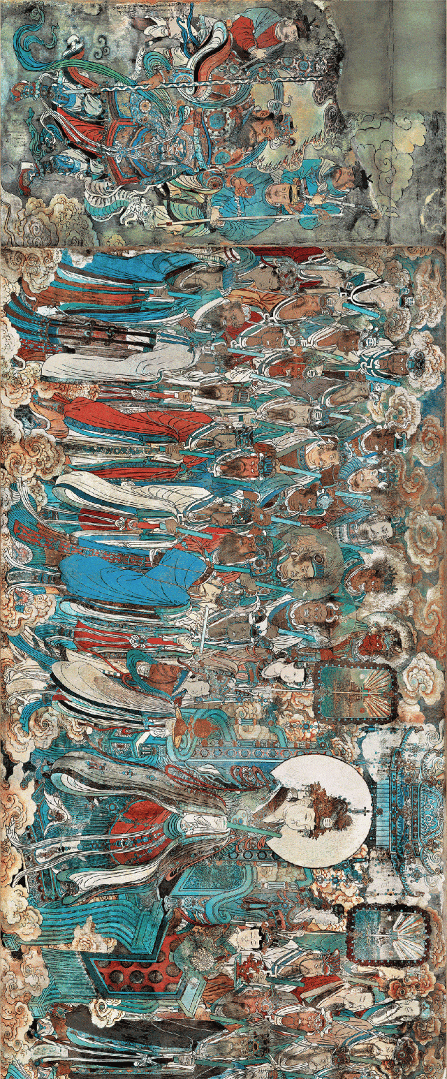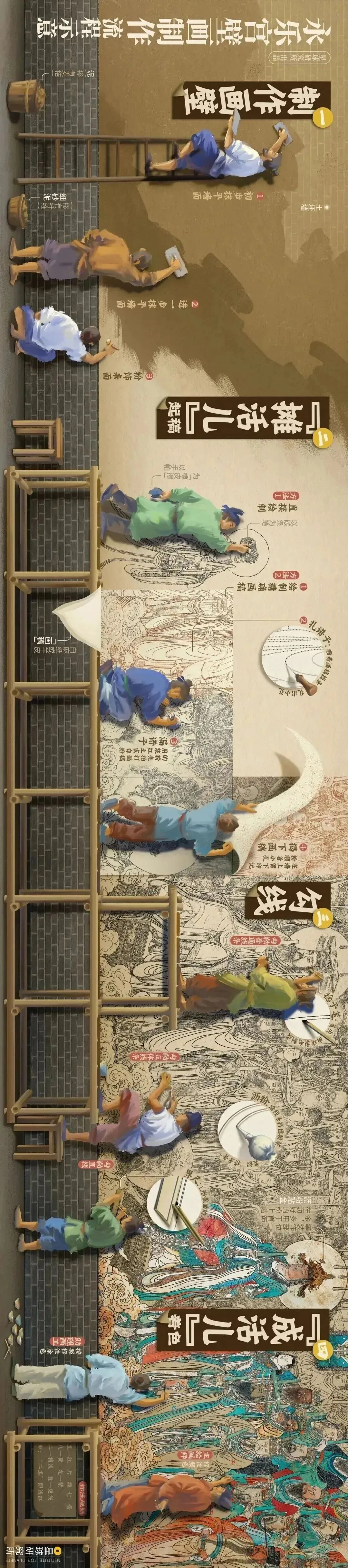 如此浩大的工程并非一个画家所能完成。《朝元图》采用了特别的创作方式——“工程分包+竞技选拔”:把东西两侧壁画交由不同的画工班子,像“打擂台”一样“竞标”,中间用幕布隔开,保证公平竞争。