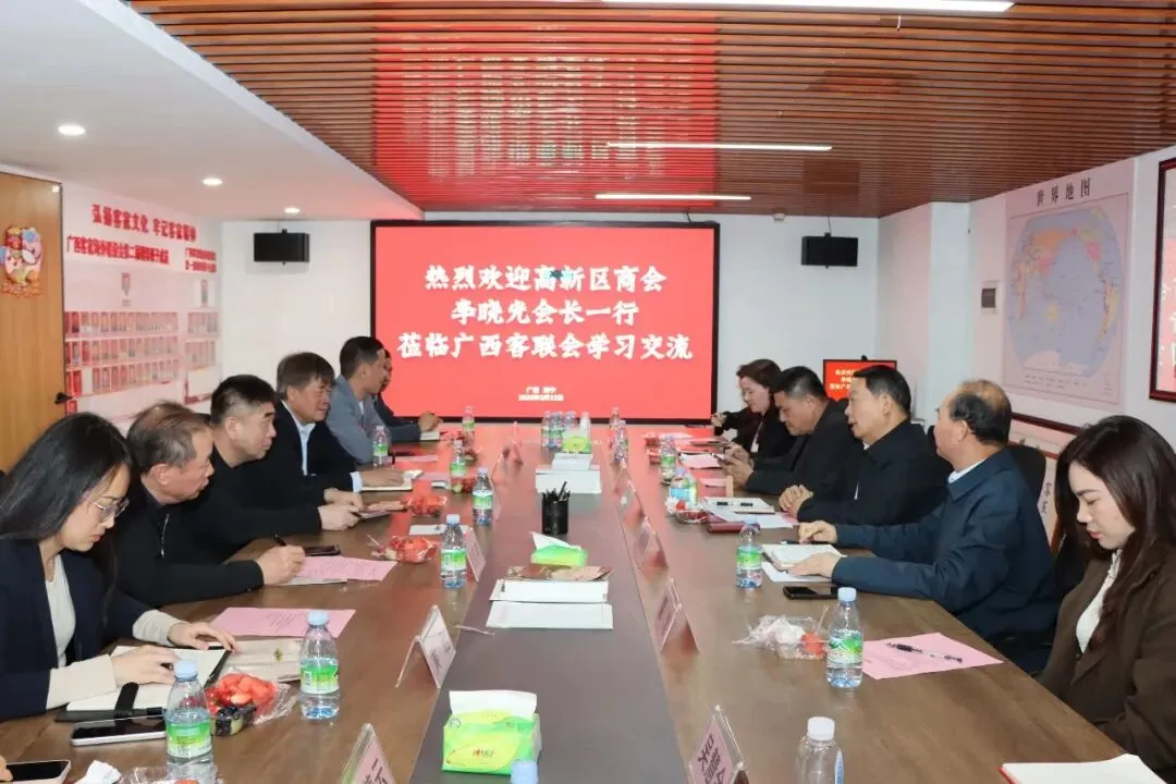 为学习借鉴优秀商会经验做法,拓宽服务企业思路,3月12日,南宁高新区商会会长李晓光率监事长覃国平、执行会长覃城雯以及商会秘书处一行赴广西客家海外联谊会开展学习交流。广西客家海外联谊会会长肖志钢、执行会长兼秘书长杨承润、常务副会长黄家桥、副会长覃慧、办公室主任高雪等给予了热情接待。