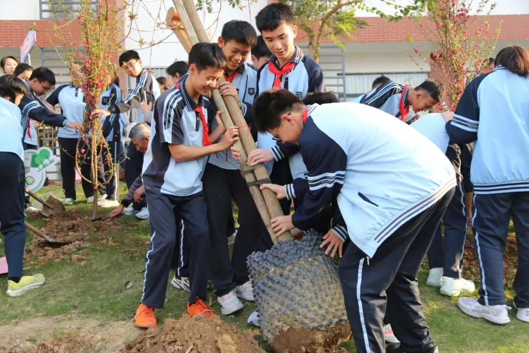 春回大地,万物更新。2026年3月12日,全国第48个植树节如约而至,南宁三中初中部青秀校区以“植绿润校园,笃行向未来”为主题,在熟悉的校园里种下樱花、黄花风铃、茶花和桃花树苗。学校师生一起躬身实践为校园增添新绿,在劳动中播种希望、涵养品格。